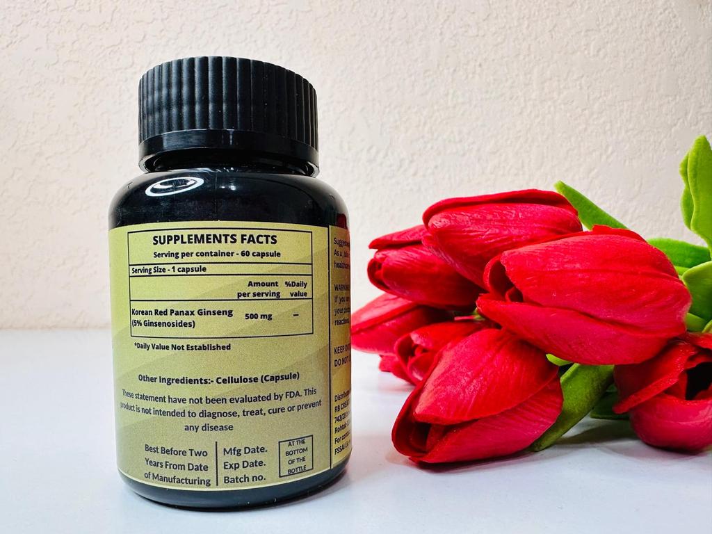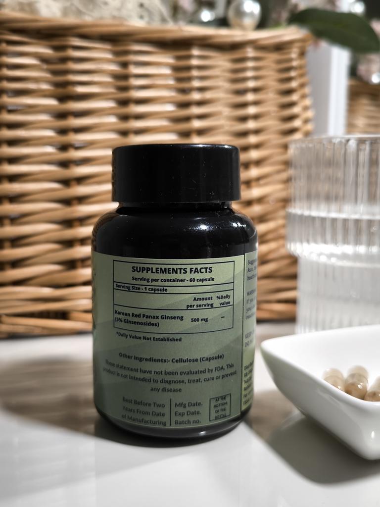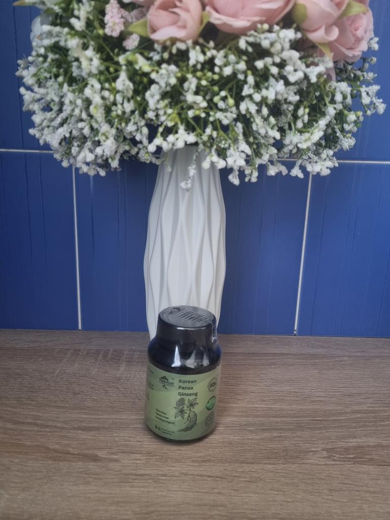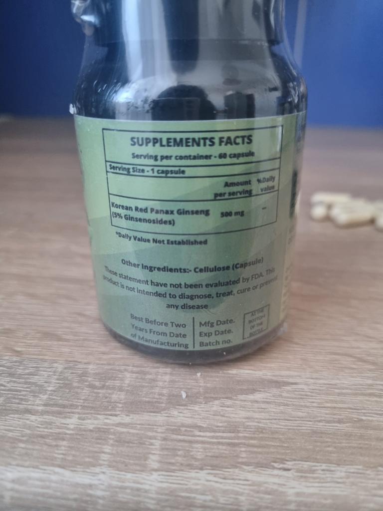 This is a dietary supplement containing high-quality Korean ginseng extract.. Korean ginseng helps maintain physical and mental performance in cases of weakness, exhaustion, fatigue and loss of concentration. Features: Supports physical strength Supports brain function Tones up well-being Increases stress resistance The use of Korean ginseng also allows you to increase stress resistance and, thanks to the content of ginsenoside Rg1, has a stimulating and stimulating effect. Interestingly, the use of ginseng can have a positive effect on mood and general well-being, as it stimulates the secretion of the hormone of happiness - serotonin. How to take: The recommended dose is 2-4 capsules of 500 mg per day. It is not recommended to exceed 3000 mg per day, as there are few studies on higher doses.. Characteristics Appointment Antioxidants For energy For general recovery For general well-being For the brain For the nervous system For immunity 60 capsules, India.