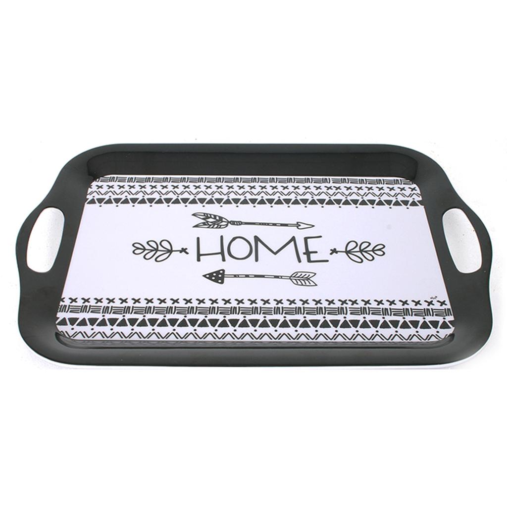 Les Trésors De Lily [A0226] - Large Black and White Melamine Tray "Home" - 41x28 Cm
