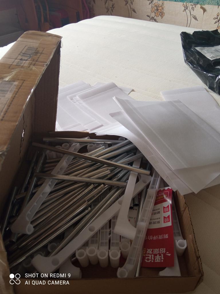 Everything is made of fabric, the metal tubes assemble quickly