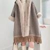 Cardigan Poncho Female Wool Collar Wool Coat Medium Long Coat Cloak Women Winter Long Sleeve Casual Velvet Hooded Cape Female