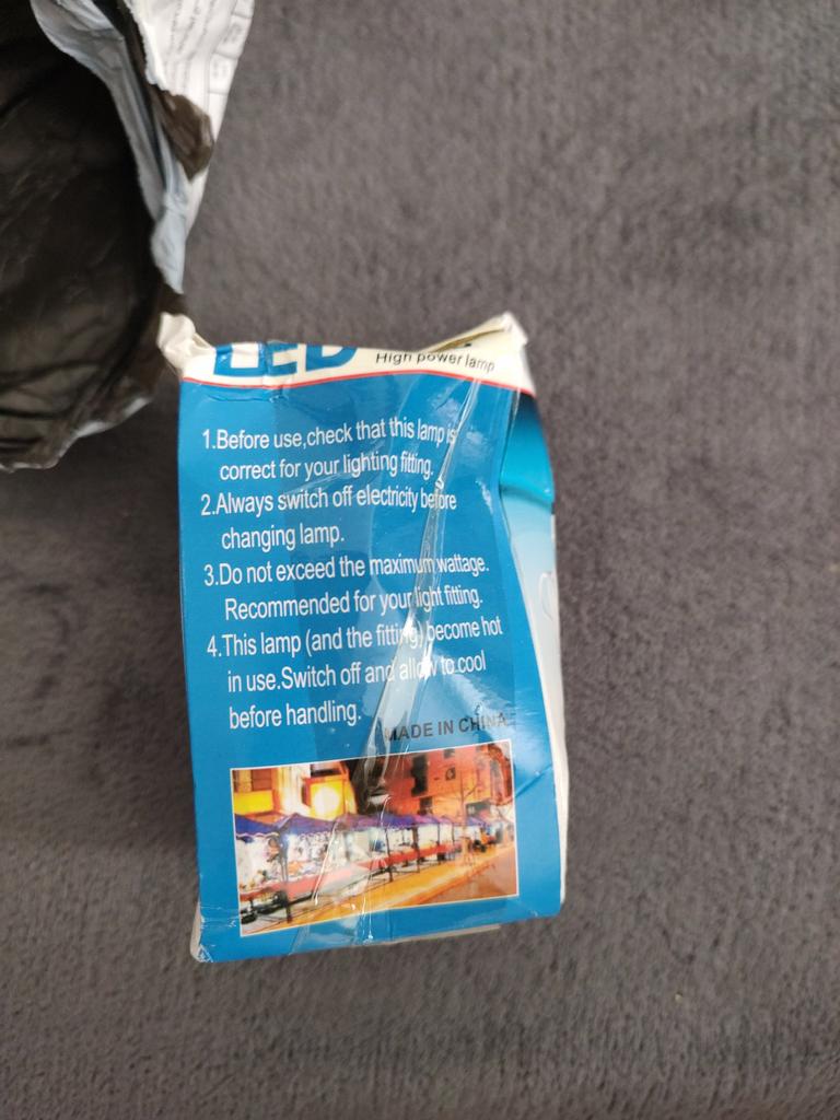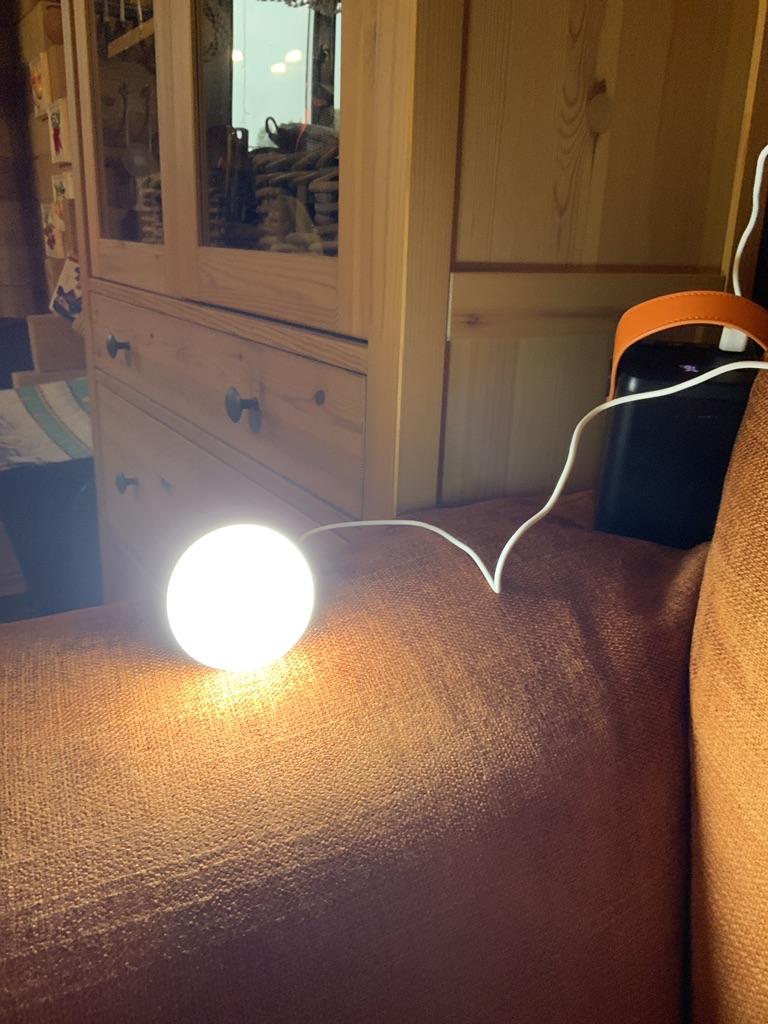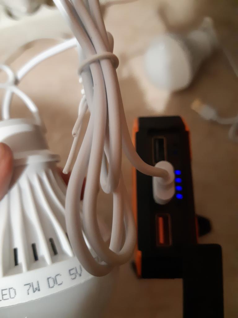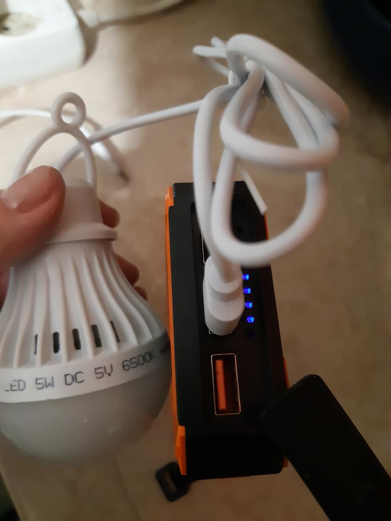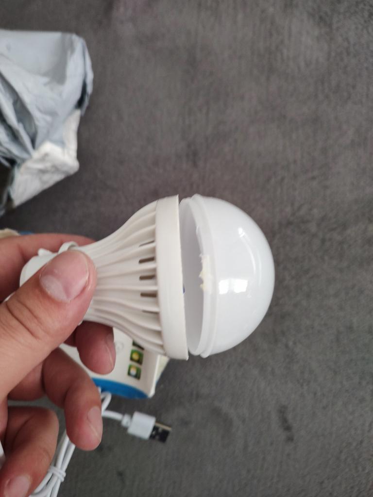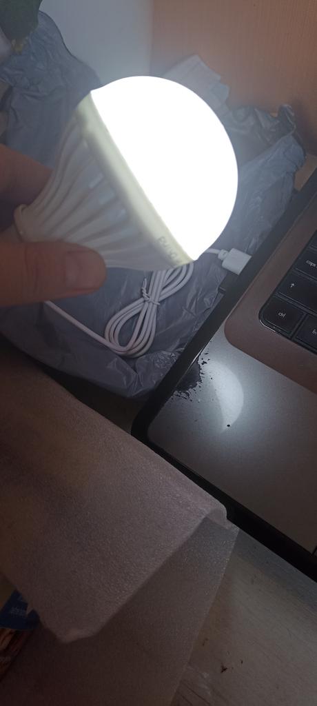 The bulb arrived intact and undamaged. It lights up nicely, you only need a power bank.