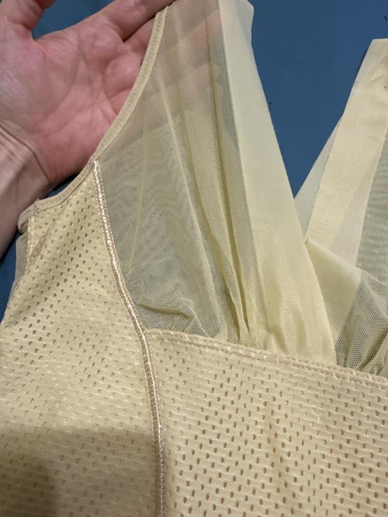 Actually a super nice piece, the fabric is comfortable and definitely good to wear on the skin, unfortunately the sizes are totally inappropriate. You should definitely measure everything and then think again about which size you take because it is supposed to shape.
