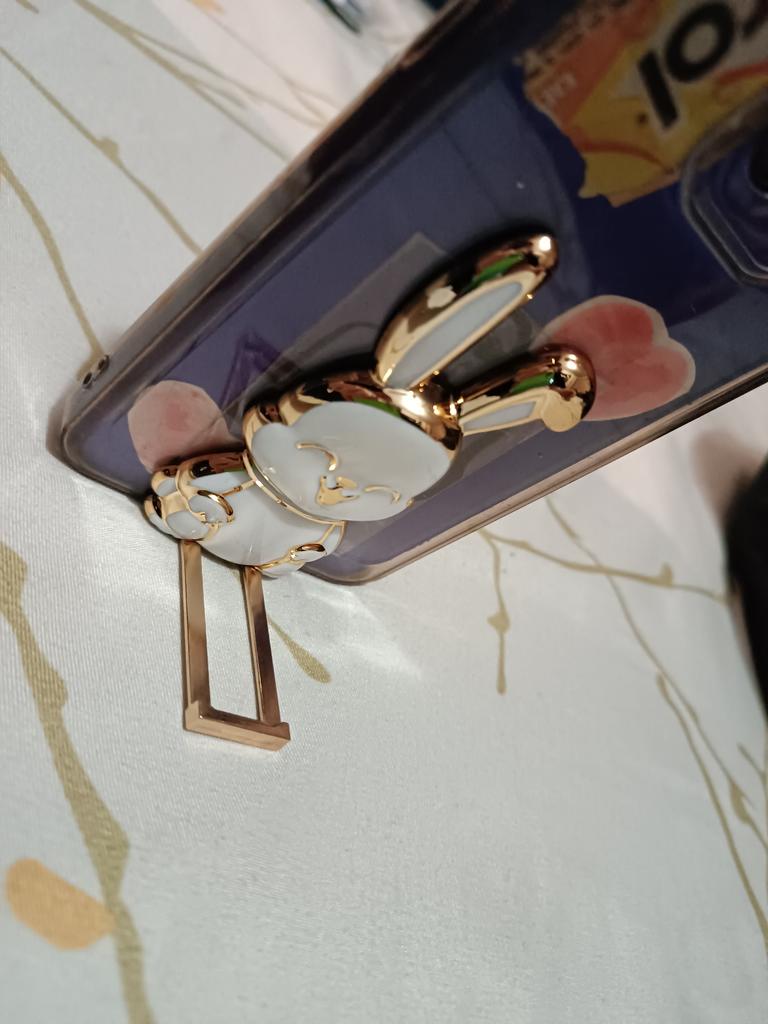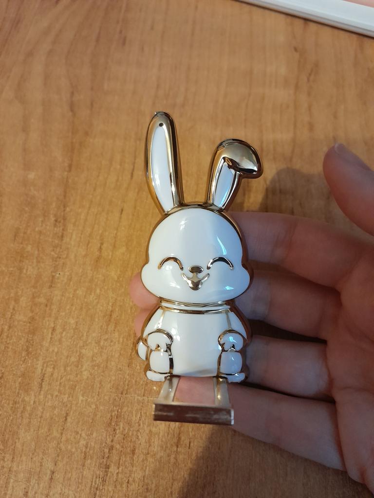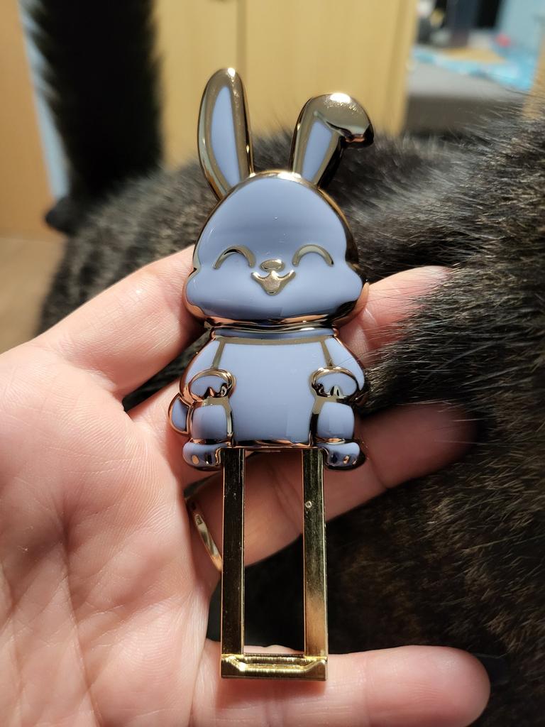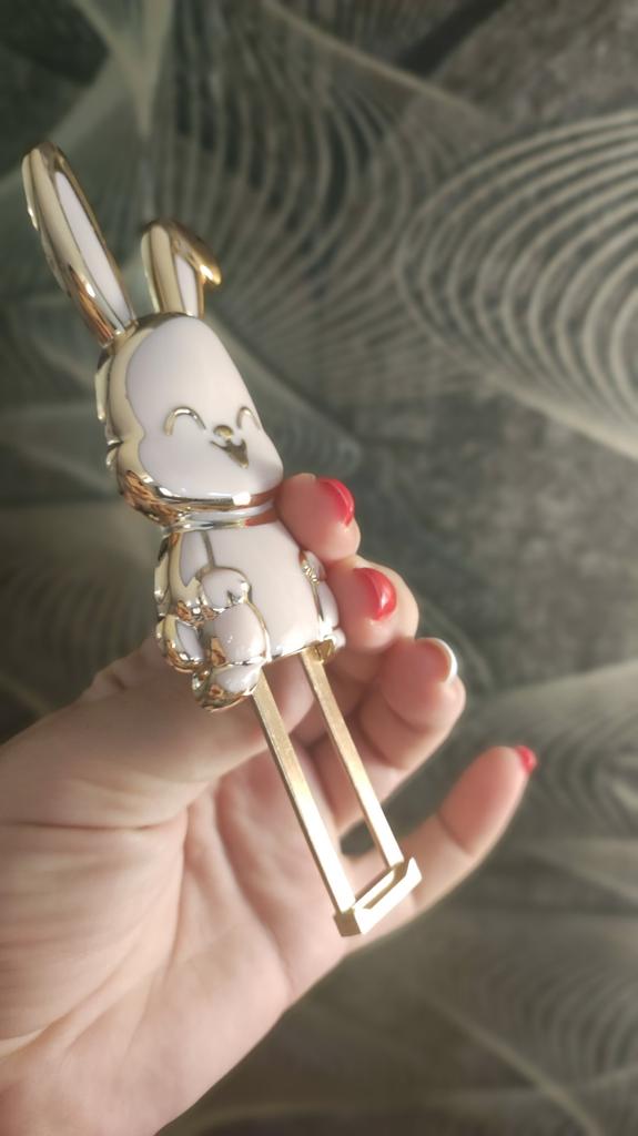 The rabbit is a stand for the phone, I don’t know how long it will last, it’s light plastic and painted, but it looks so cute!!