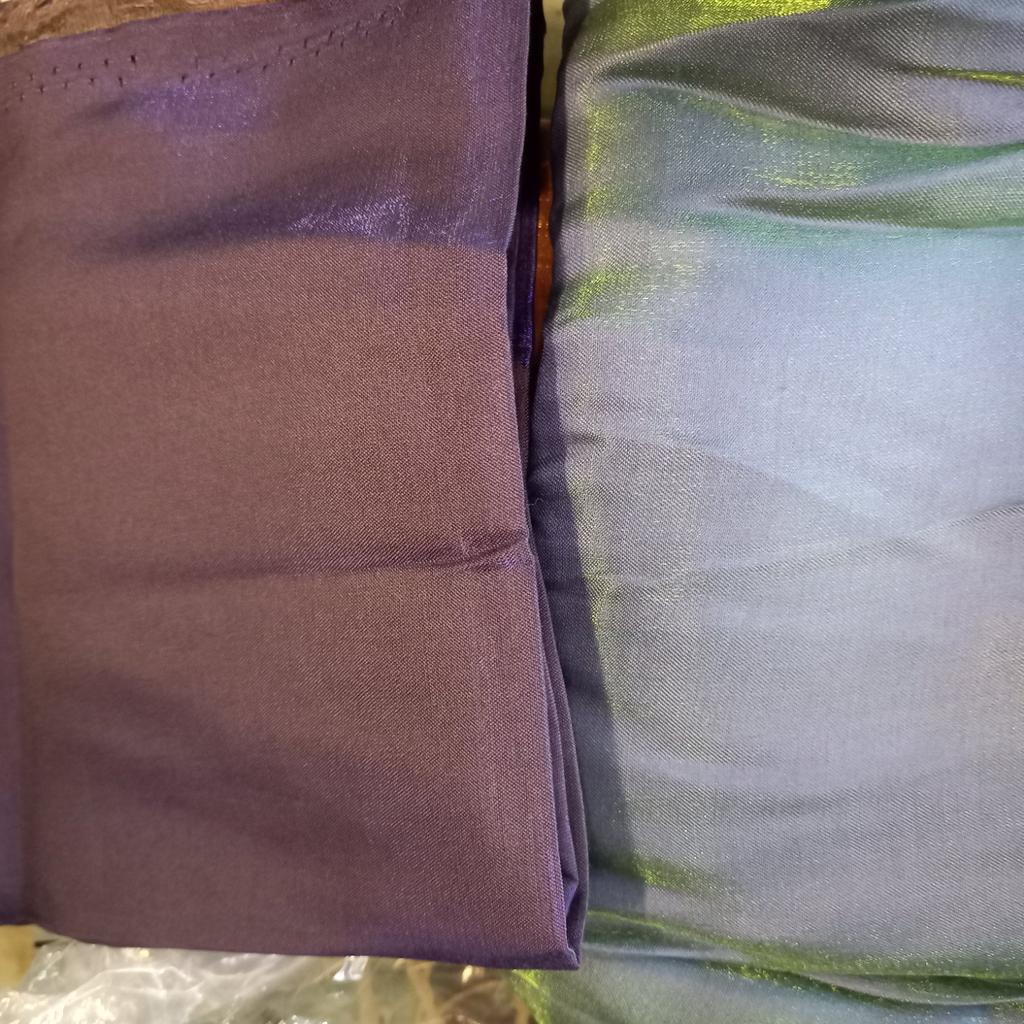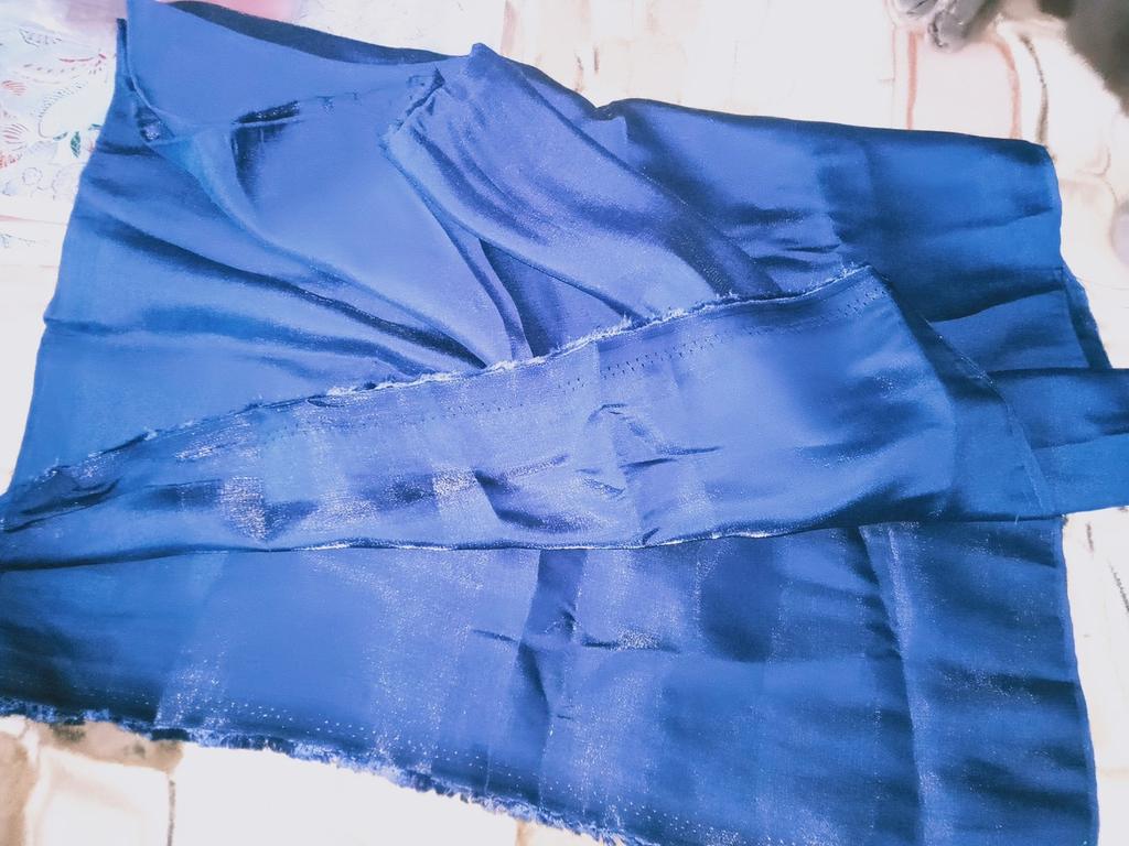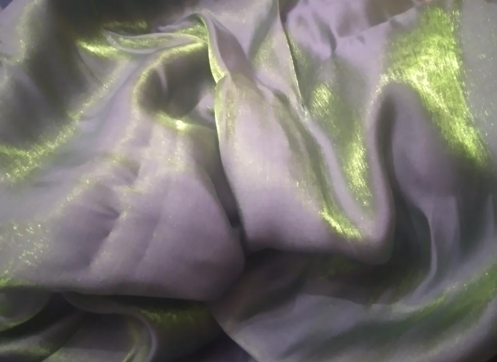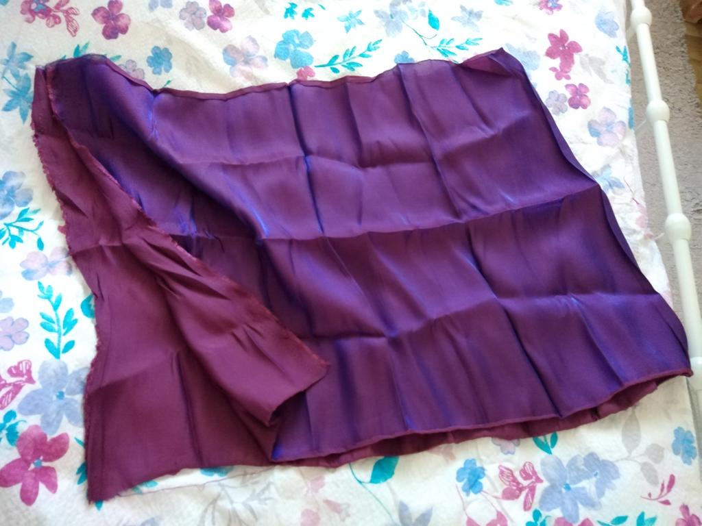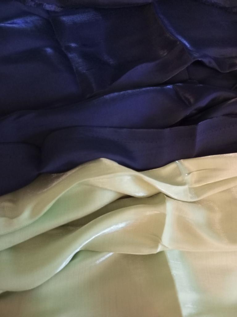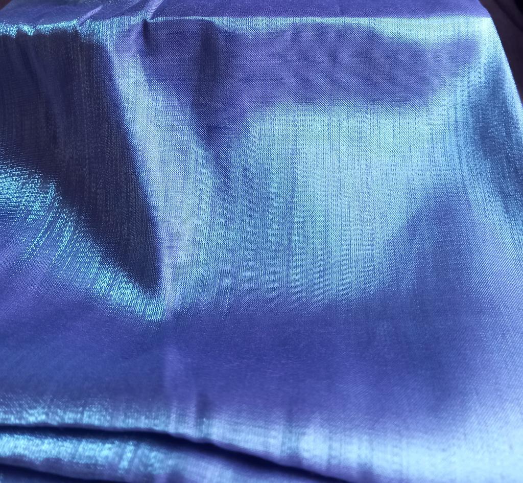 Nice fabric. Shines beautifully - base color is blue, warp yarn is shiny green. The fabric flows beautifully.