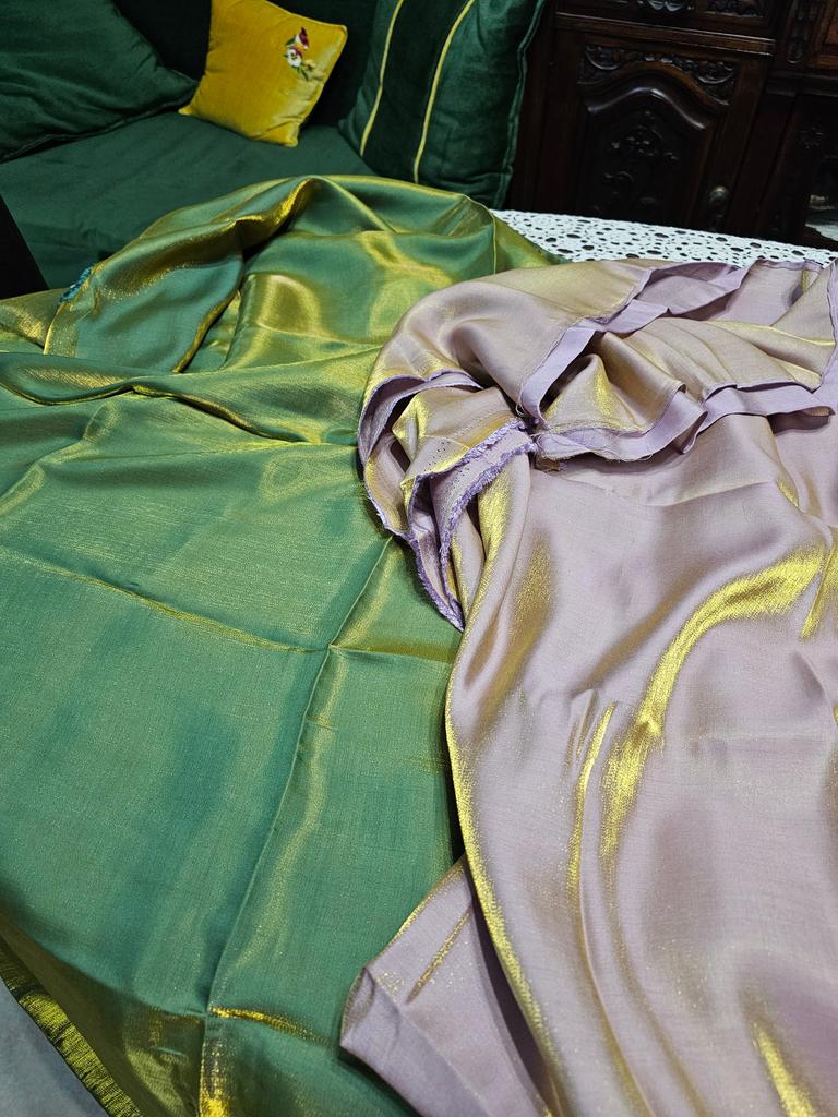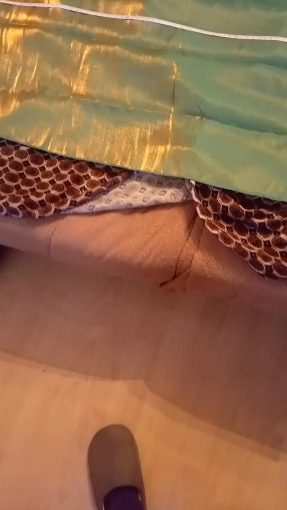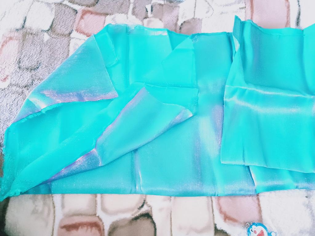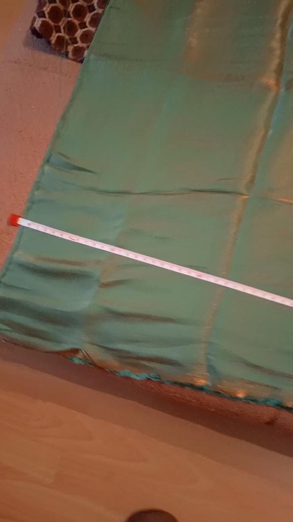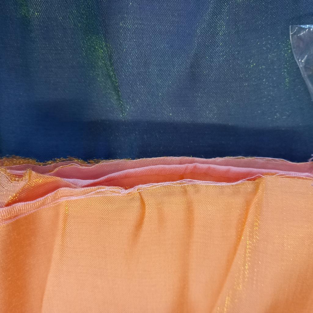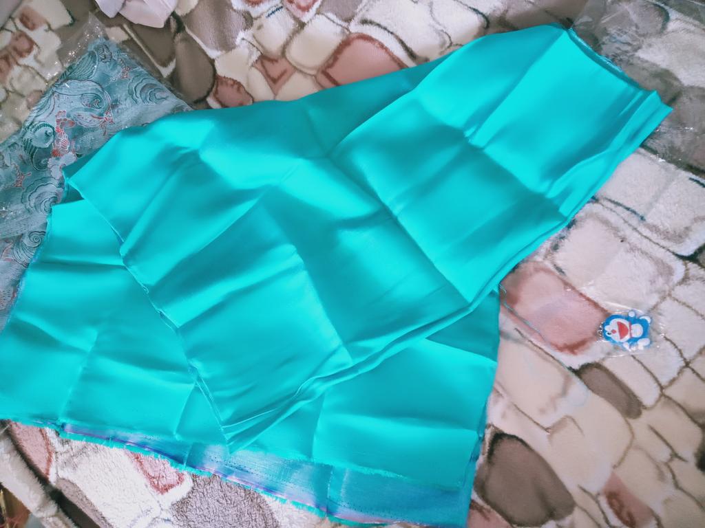 Nice fabric. Shines beautifully - base color is blue, warp yarn is shiny green. The fabric flows beautifully.