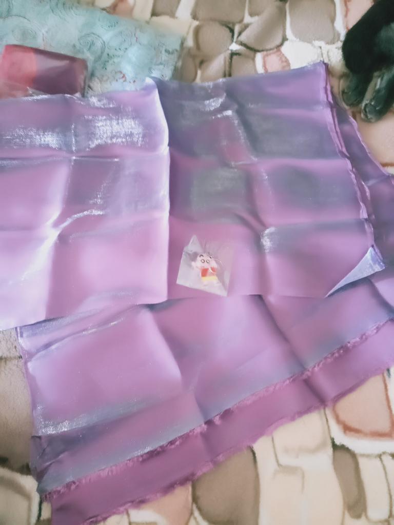 Beautiful purple fabric with silver shine - the turquoise stitch is not as strong as in the photo. Fabric is very flowy