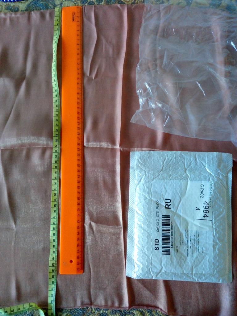 Meter by meter, ordered, half a meter arrived. The fabric is just right - it doesn’t sparkle much, the tone is darker, green. I will sew a short blouse, since the fabric is cut 50 cm, the length of the blouse will be 50 cm.