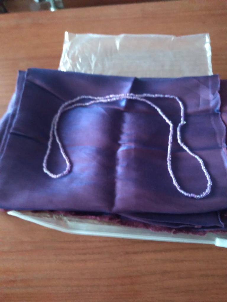 Thank you! The fabric is interesting, a string of beads to match the color is a gift!
