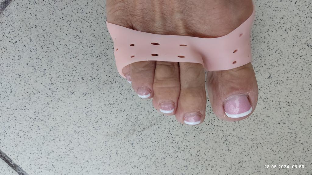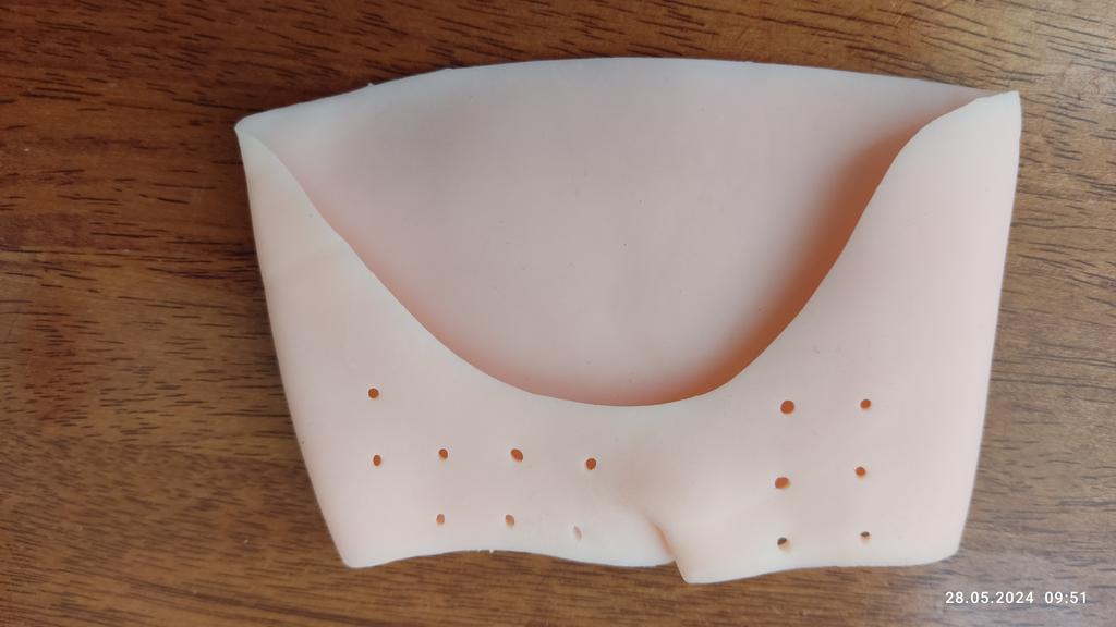 The color is not very fleshy. Rather pink. So it will be noticeable in open shoes. The silicone is quite thick, so not all shoes can fit.