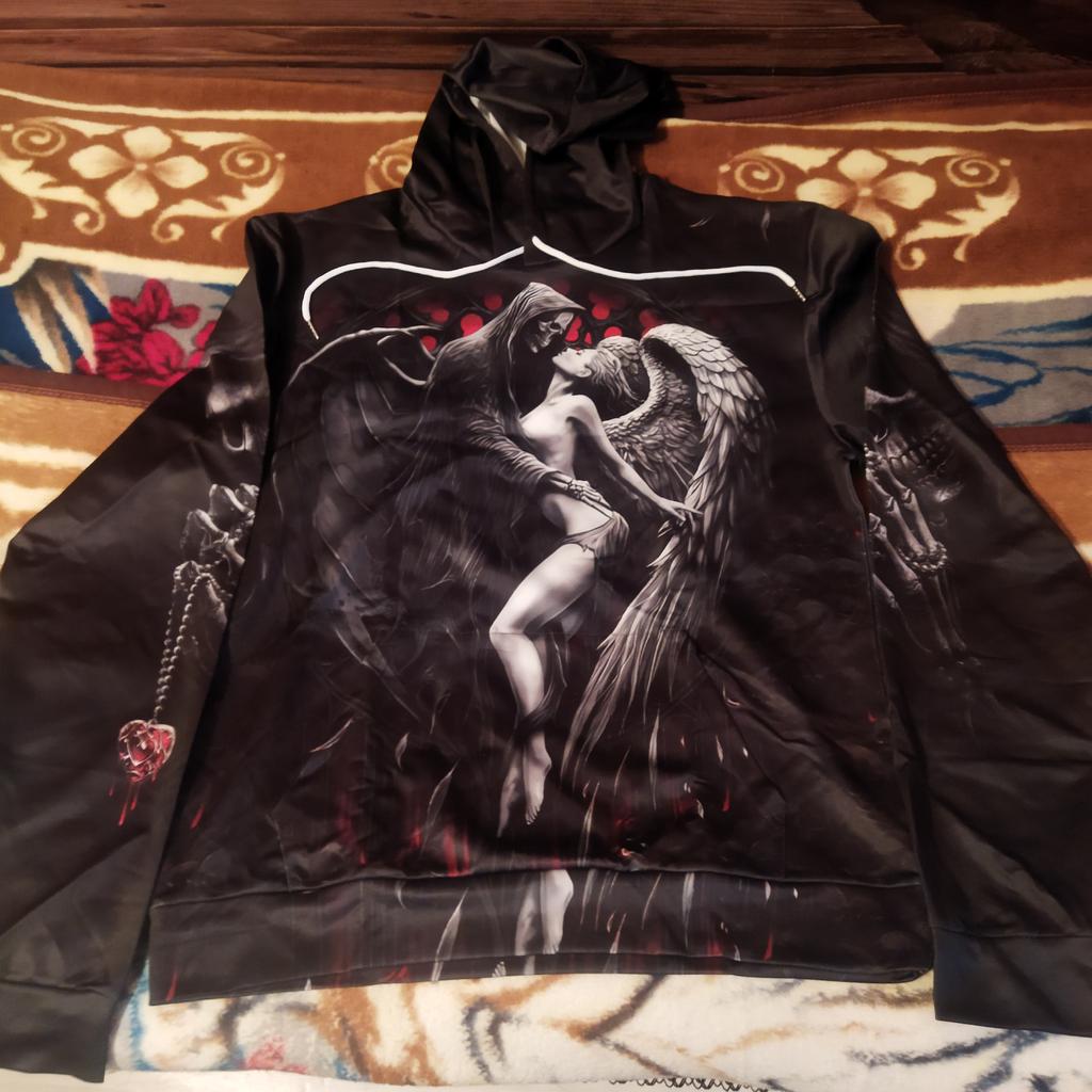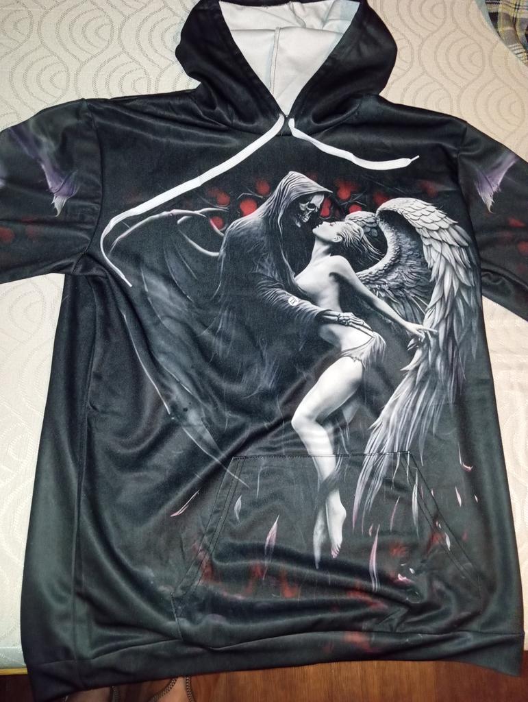 Spring Autumn Men's Hoodies Sweatshirt 3D Print Reaper Skull Angel And Demon Man Clothing Fashion Casual Pullover Sweater Male