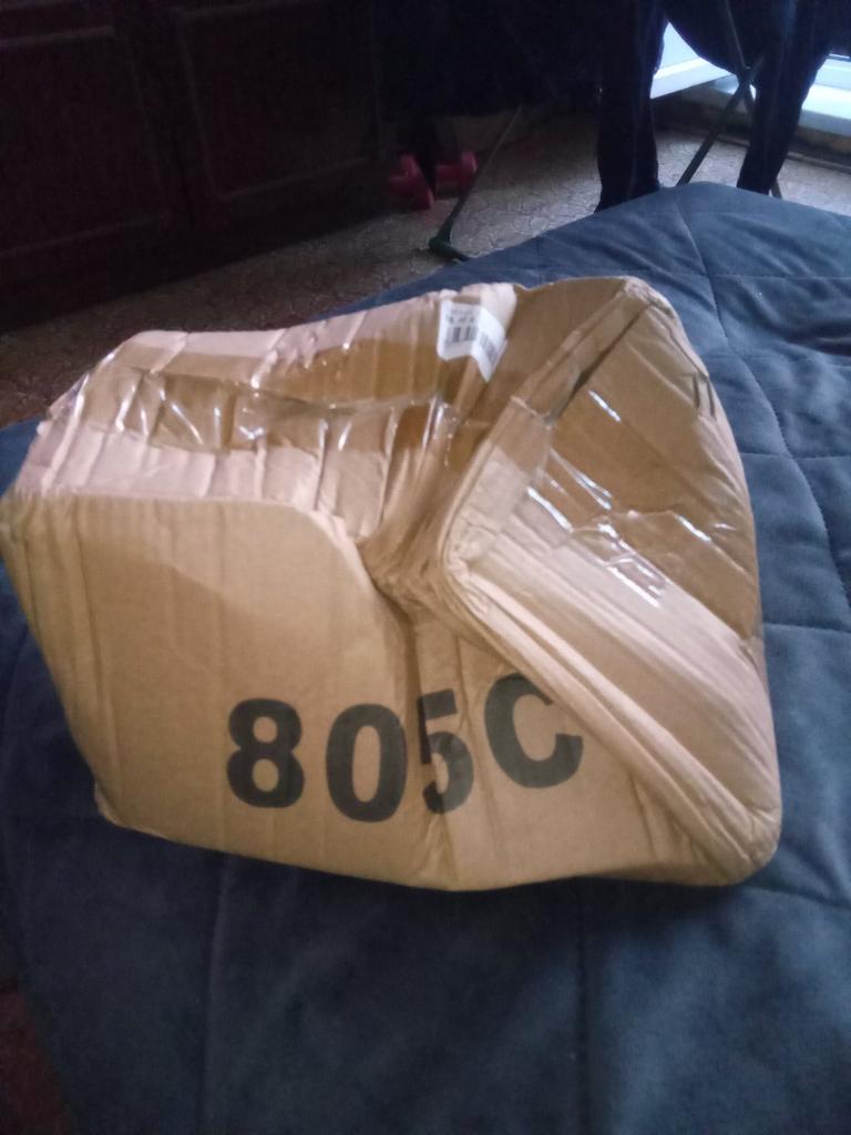 Delivered by courier. Everything is assembled.
