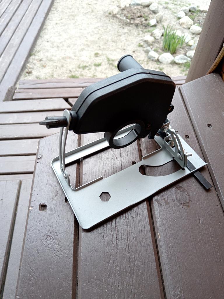 Very thin metal, the attachment points are bent It is not possible to properly secure the angle grinder If you insert it, it doesn't move all the way down and up, respectively, and tilting it is also not possible to its full extent. The product does not meet the criteria for working with the tool, you can only cause harm