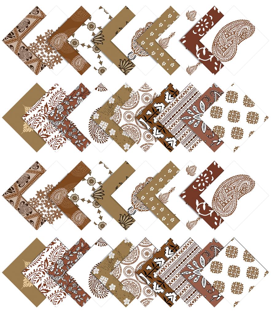 * AVOID PRE WASHING: These Pre-cut fabrics such as charm squares, triangles should not be washed before use, as being small, they might distort.
