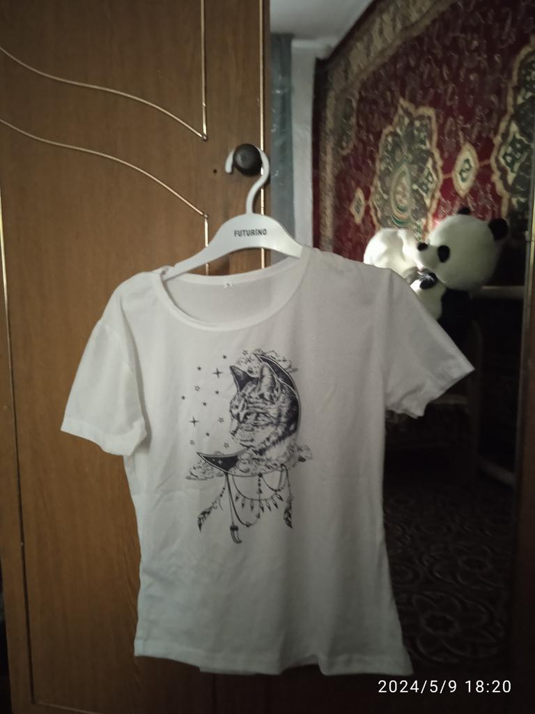 Mega god T-shirt, very comfortable and pleasant material, the picture is the same as the picture, the size corresponds to my size XS, delivery without any problems, I personally recommend it warmly 😍🥰🤗❤