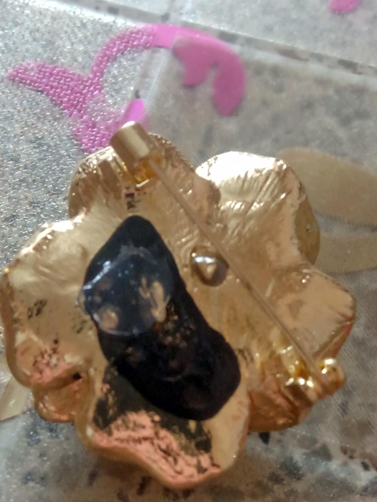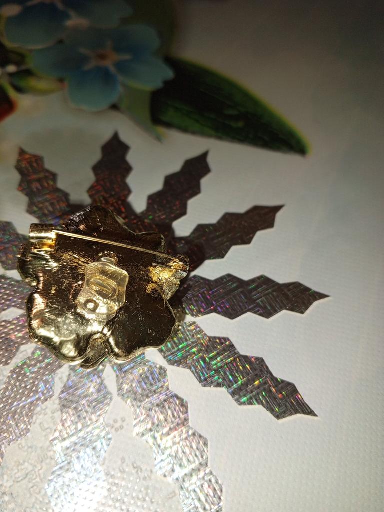 The brooch is very beautiful, all iridescent. Better than in the photo