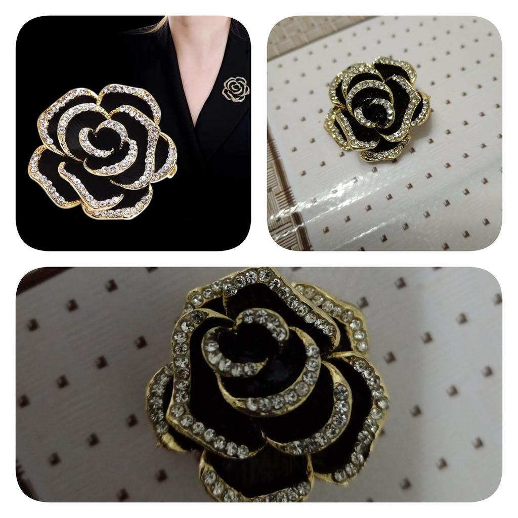 1Pc Rhinestone Camellia Flower Brooches For Women Enamel Pin Jewelry