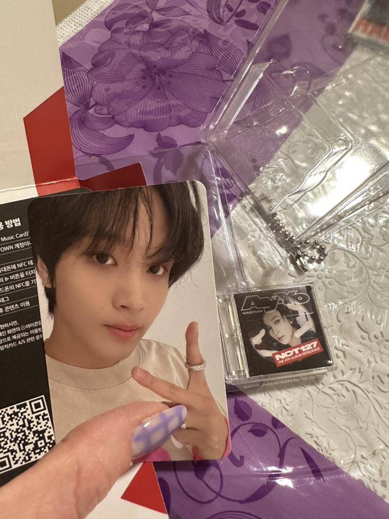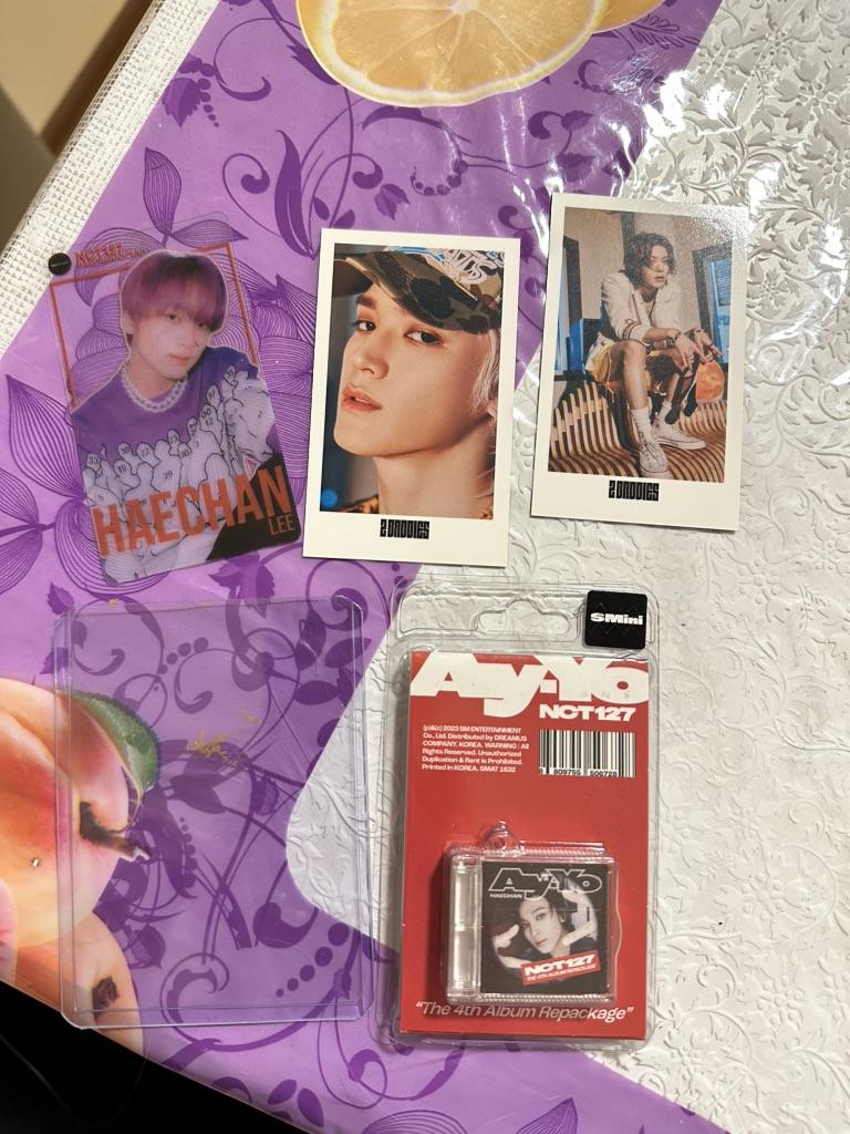 everything arrived plus or minus quickly waited just over a month everything is well packed, even very I was madly waiting for this package, so I am very glad that now I have markie put Taeil and Mark's polaroids 😭😭🤲 and a big protector (I don't remember what it's called) got a hyuk card 🥳🥳🥳 In general, I am extremely happy and happy 😭❤️