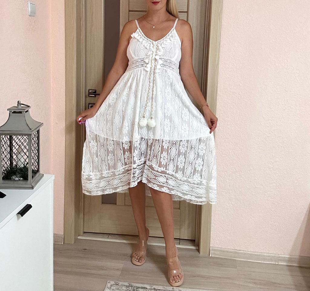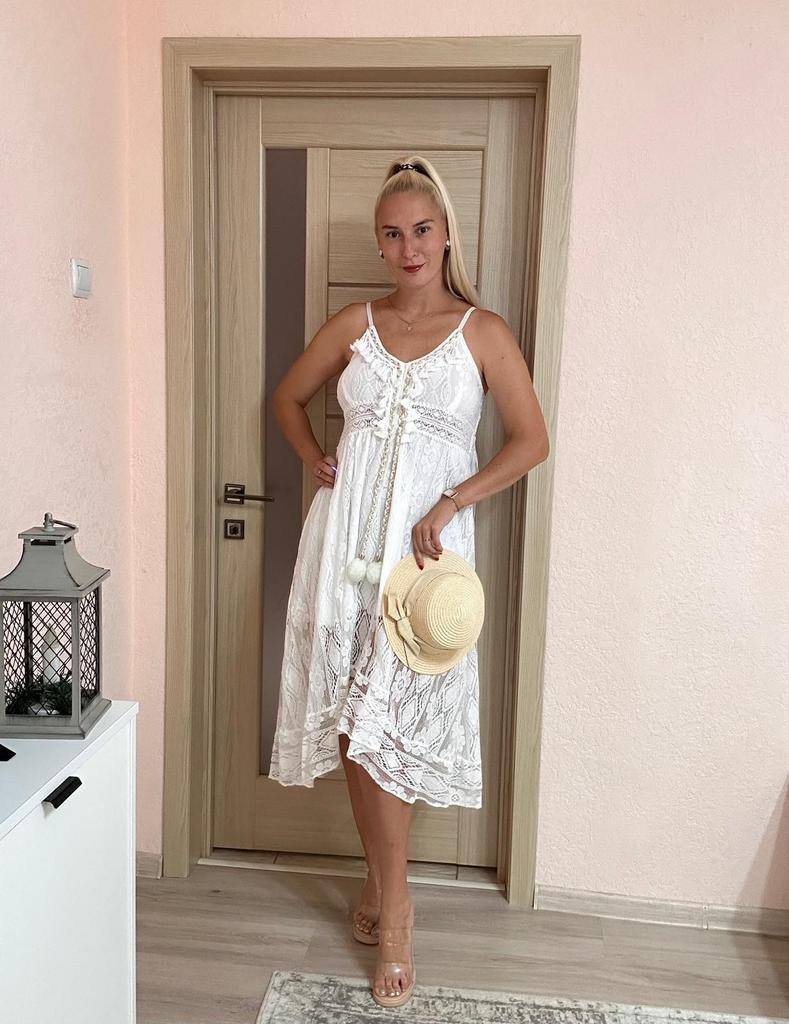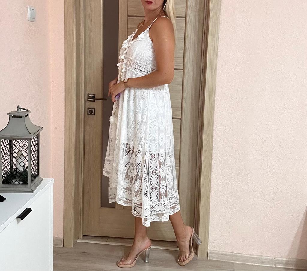 Summer Lace Dress Elegant Lady Holiday V Neck Spaghetti Strap Sundress Boho White Maxi Dress For Women Vestidos De Mujer 22194