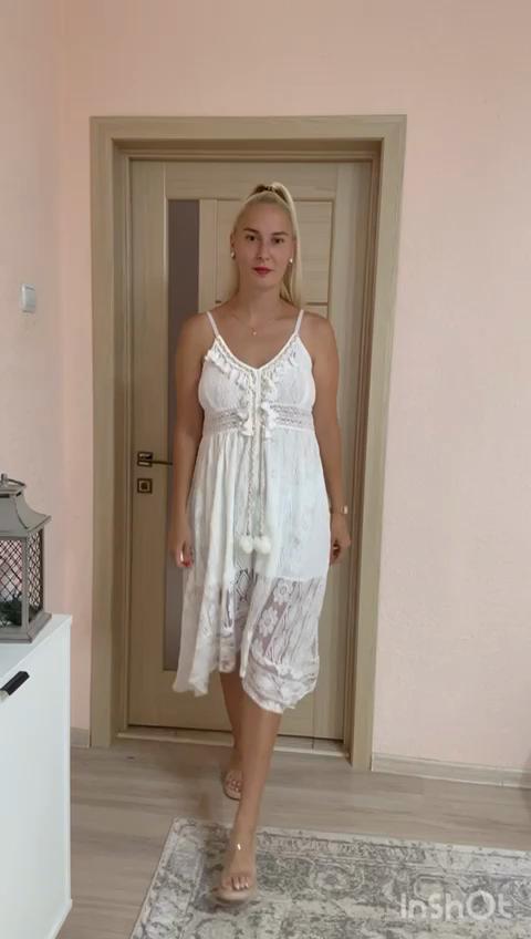 The color of the dress is more yellow, the lace is not as chic as in the picture. Nevertheless, I like it very much. I'm looking forward to summer so I can finally wear ey