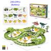 Dinosaur Race Track Set Rail Car Toys Assembly Bend Flex Racing Track Led Electronic Flash Light Car Toys for Children Years Gift