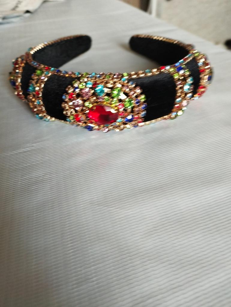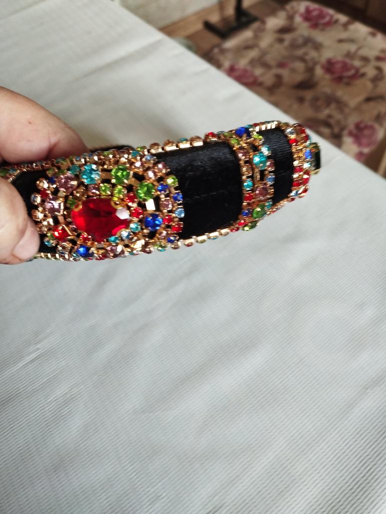 Women Hair Hoop Gold Velvet Crystal Wide Edge Sponge Hair Ornament Vintage Headband