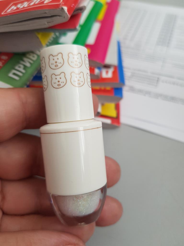 Good gloss. The glitter doesn't come off that easily, I tried to remove it from my hand - it didn't work. So the durability is 10/10. I applied it to my eyes, so far there are no reactions 😁