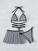 3 Pieces Bikini Dress Sexy Women Swimsuits Female Swimwear Sparkling Silver Bikinis Set Summer Biquini Swimming Suits Beachwear