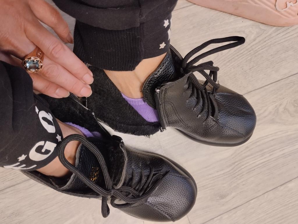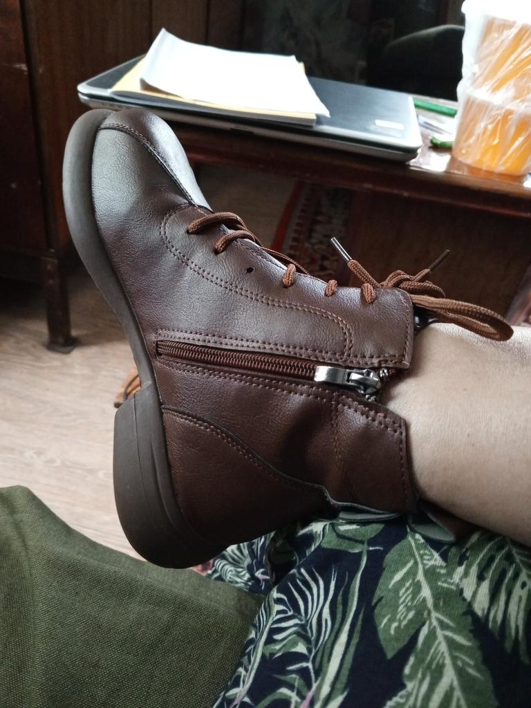 They fit size 37. Thin, as I wanted. For early autumn. Comfortable, but it's a pity about the crease on the left boot. The zipper and laces are excellent.