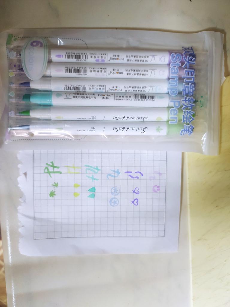 6pcs Color Stamp Pen Set Seal Paint Dual-side Brush & Highlighter Liner Art Marker for Drawing