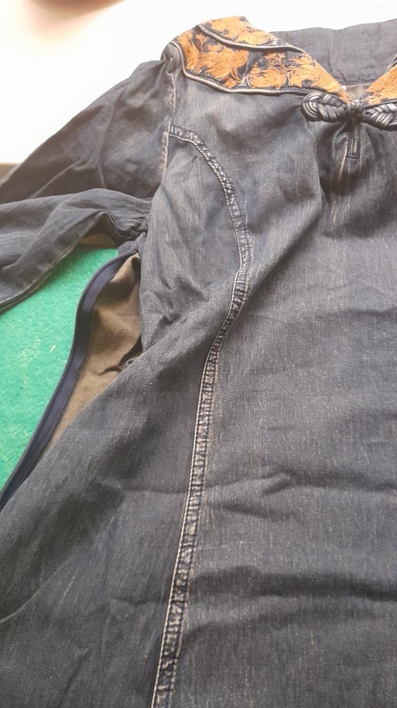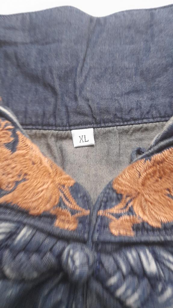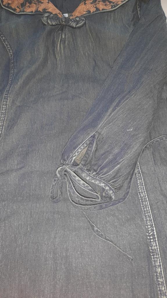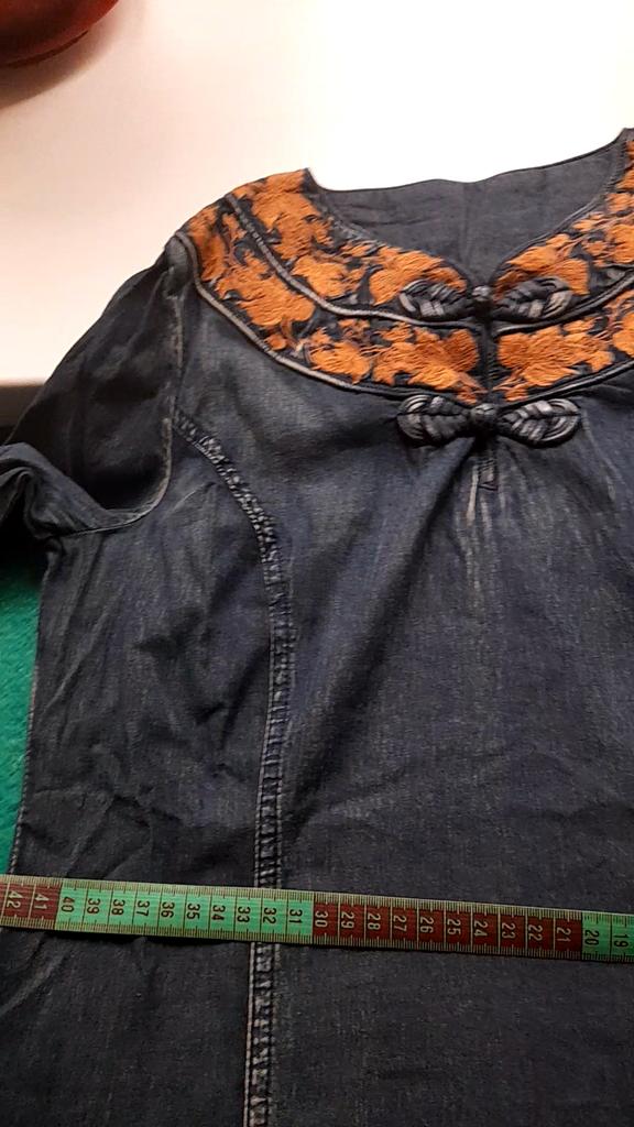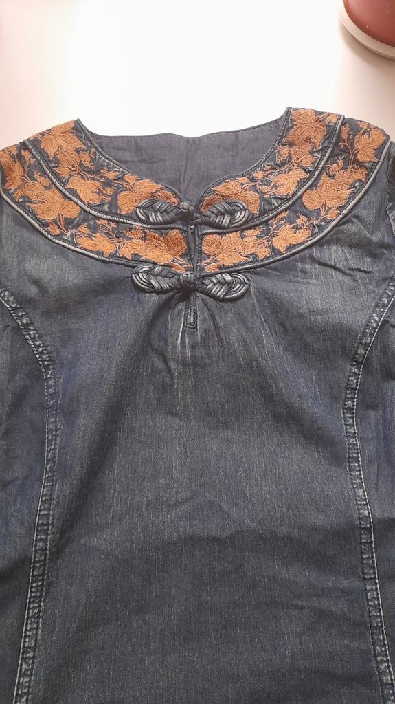 Johnature Women Fashion Embroidery Chinese Style Dress Solid Color Irregular Fishtail Denim Dresses