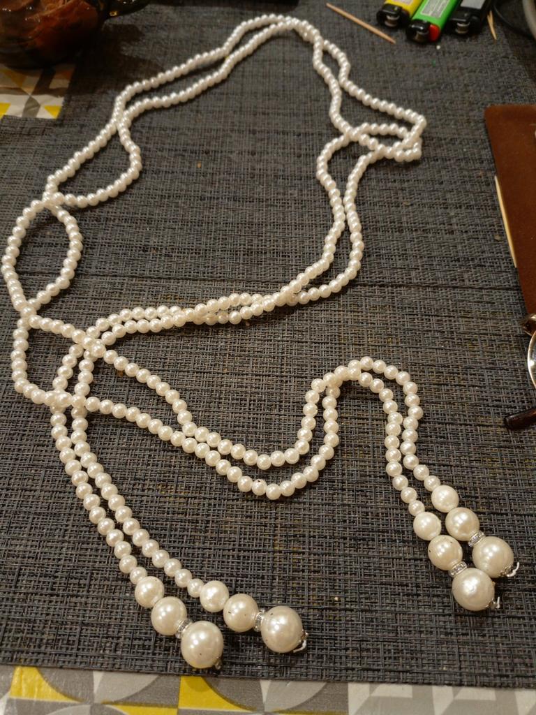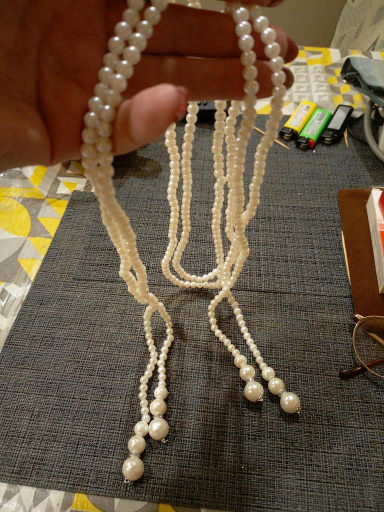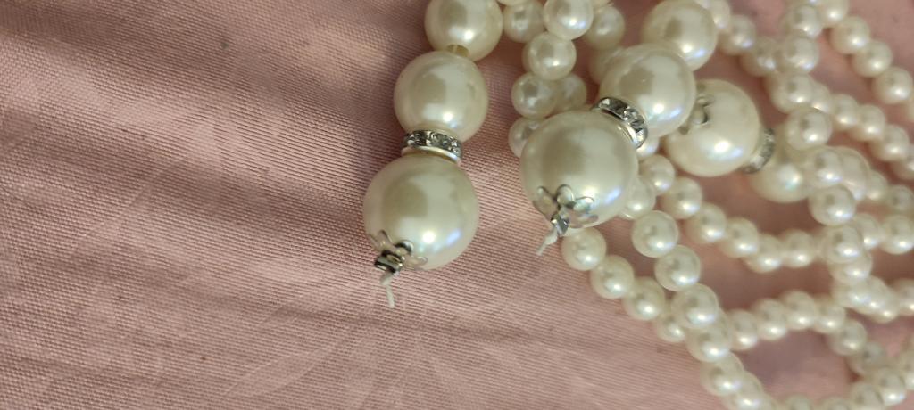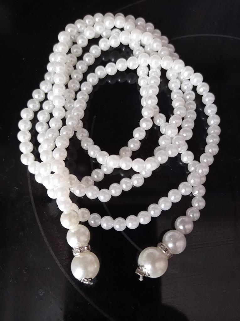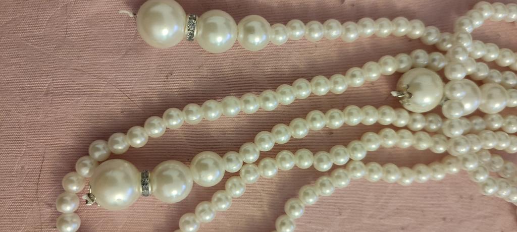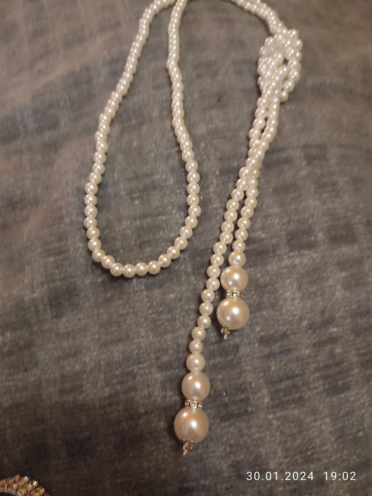 A beautiful necklace consisting of two strands of artificial pearls. Looks beautiful, can be separated or combined.