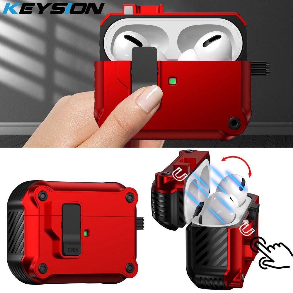 KEYSION Bluetooth Earphone Case for Apple AirPods Pro 2 1 With Switch and Hook Silicone+PC Shockproof Cover for AirPods 3 2 1