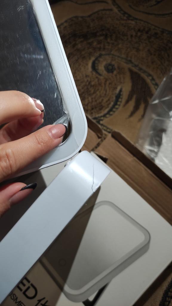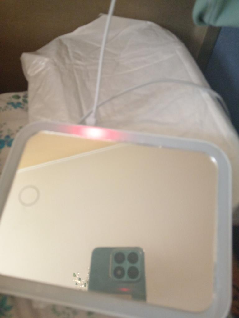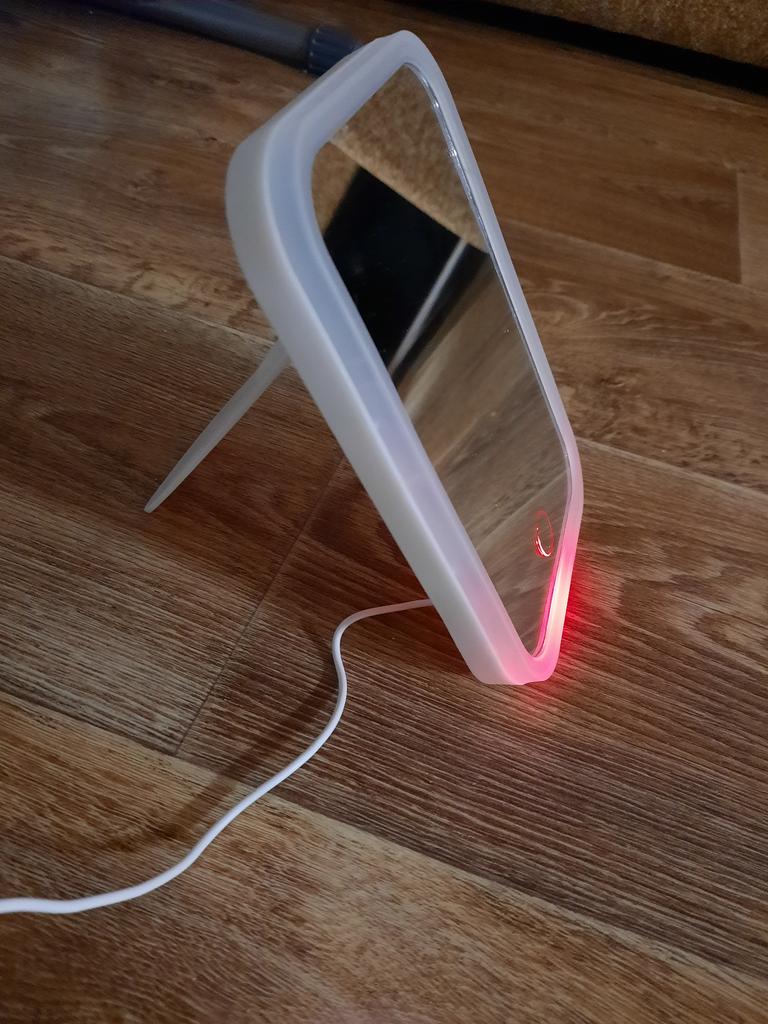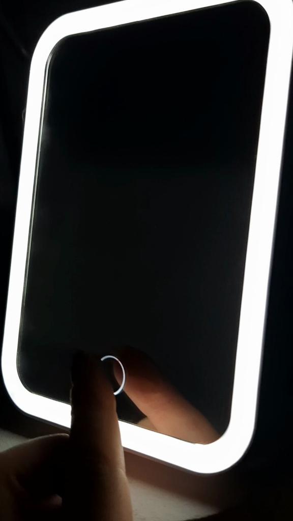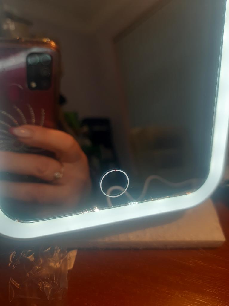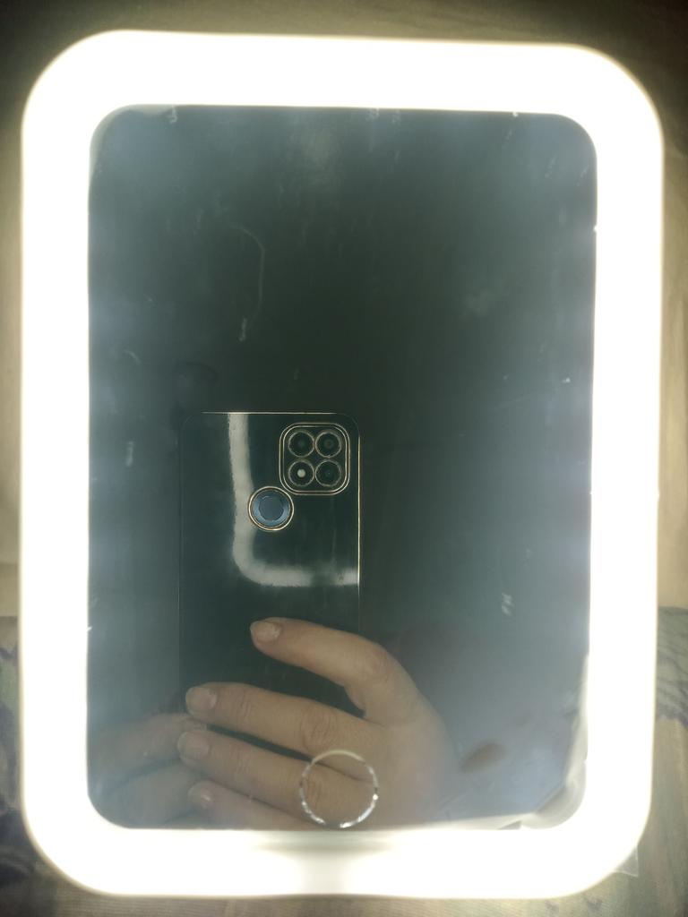 The mirror arrived intact, without damage, not charged, charging and cable work. The shape of the mirror is convenient. Thank you very much to the store and Joom.