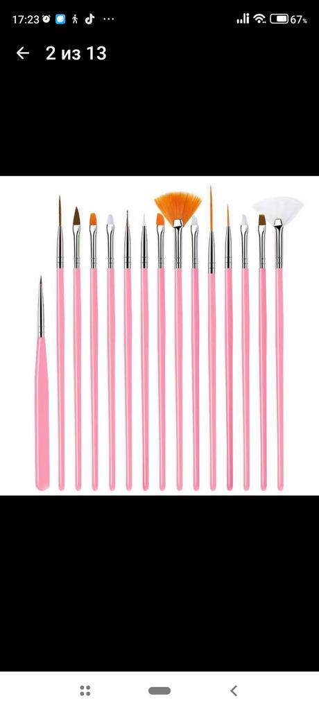 🛍️Set of 15 gel brushes for manicure🛍️ Rating: ⭐⭐⭐⭐⭐ 👈In this kit you get 15 good quality manicure brushes in 15 different sizes and shapes so that you can draw beautifully on the nail... in a better and more convenient way. •This kit looks so beautiful and its gel brushes are also stunningly stylish. • The gill brushes are very high quality, they have a plastic handle for synthetic fiber hair • You can choose the kit in pink or black, I chose purple. • The kit arrived protected in a beautiful box 👈 Highly recommended to buy🛍️