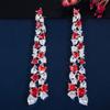 CMM Unique Love Heart Cut Sparkly Red Cubic Zirconia Long Dangle Drop Earrings for Women Jewelry Gift