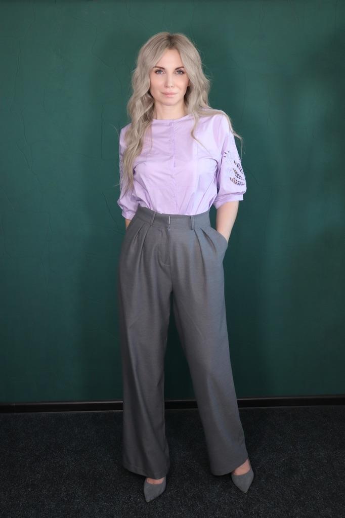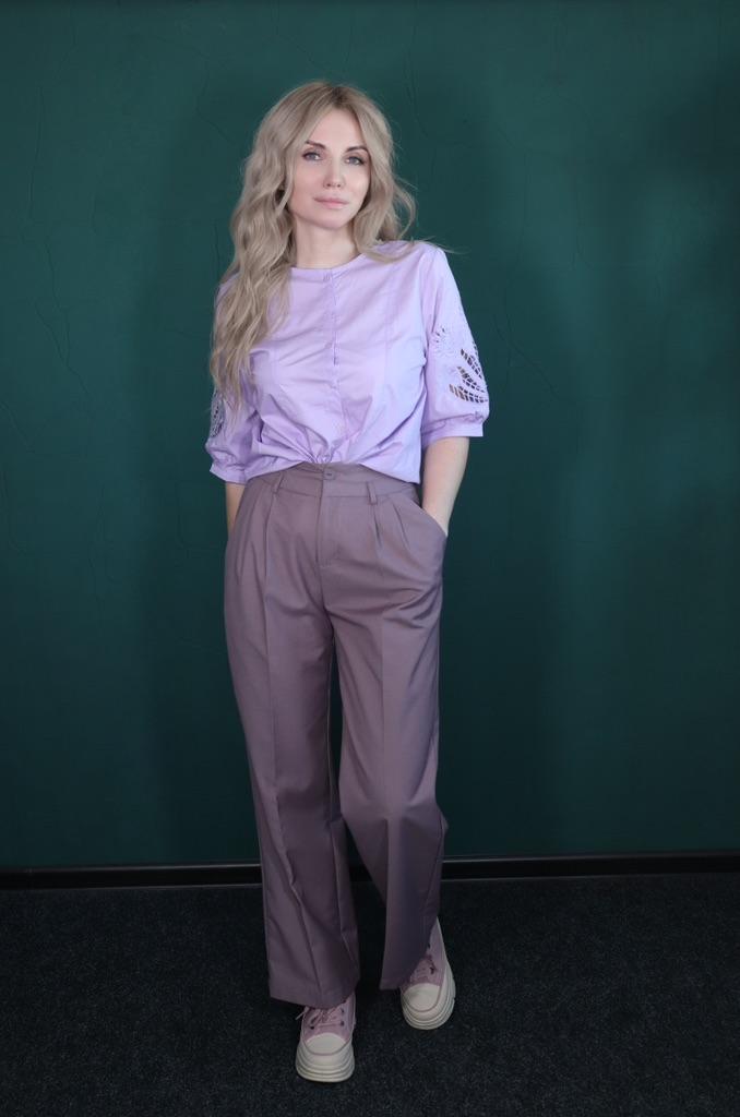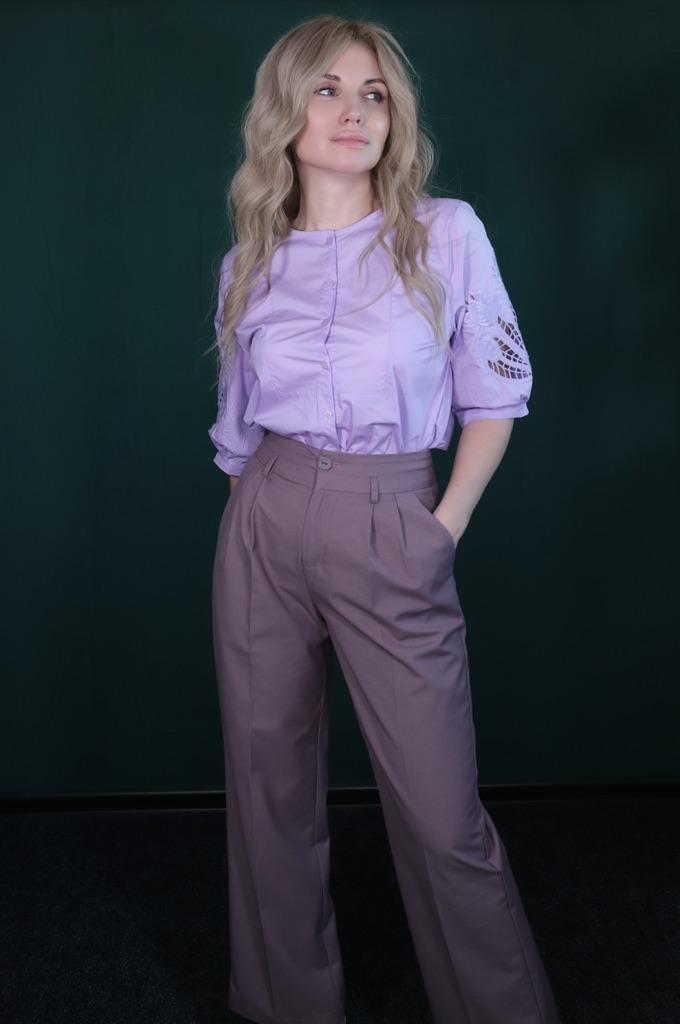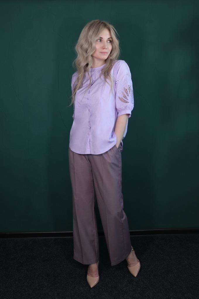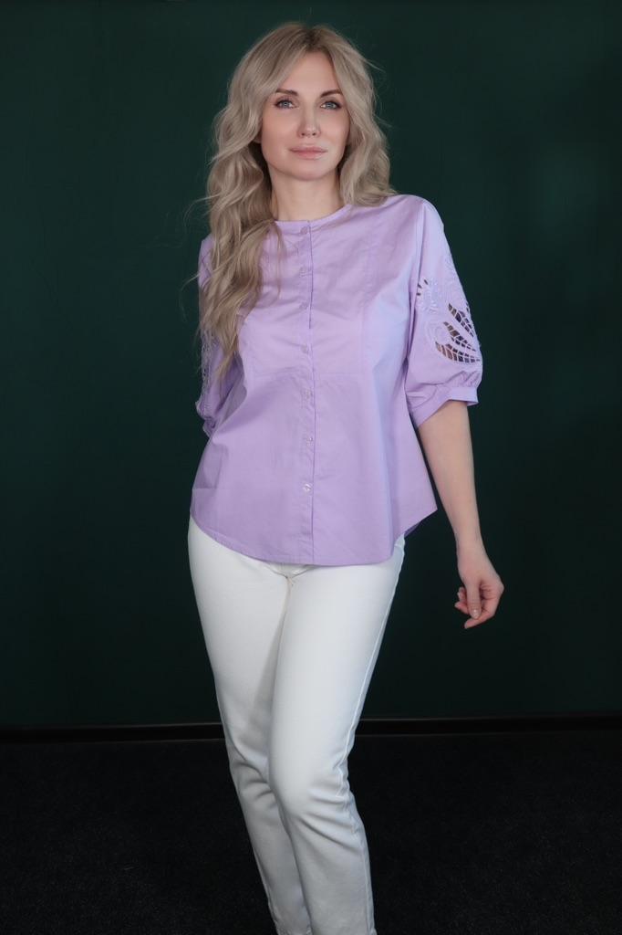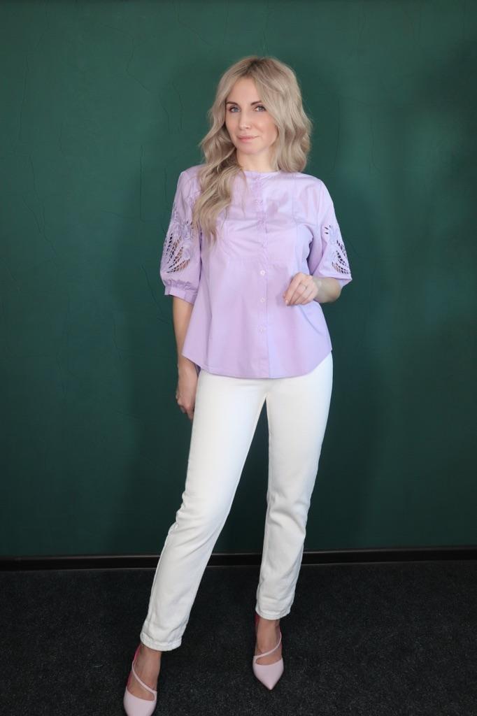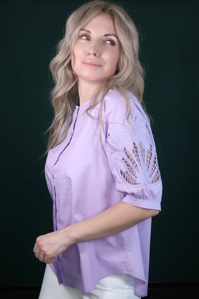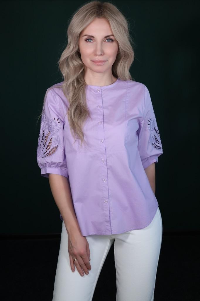 Purple Hollow Embroidery Cotton Shirt Women's Summer Design Round Neck Loose Shirt Top