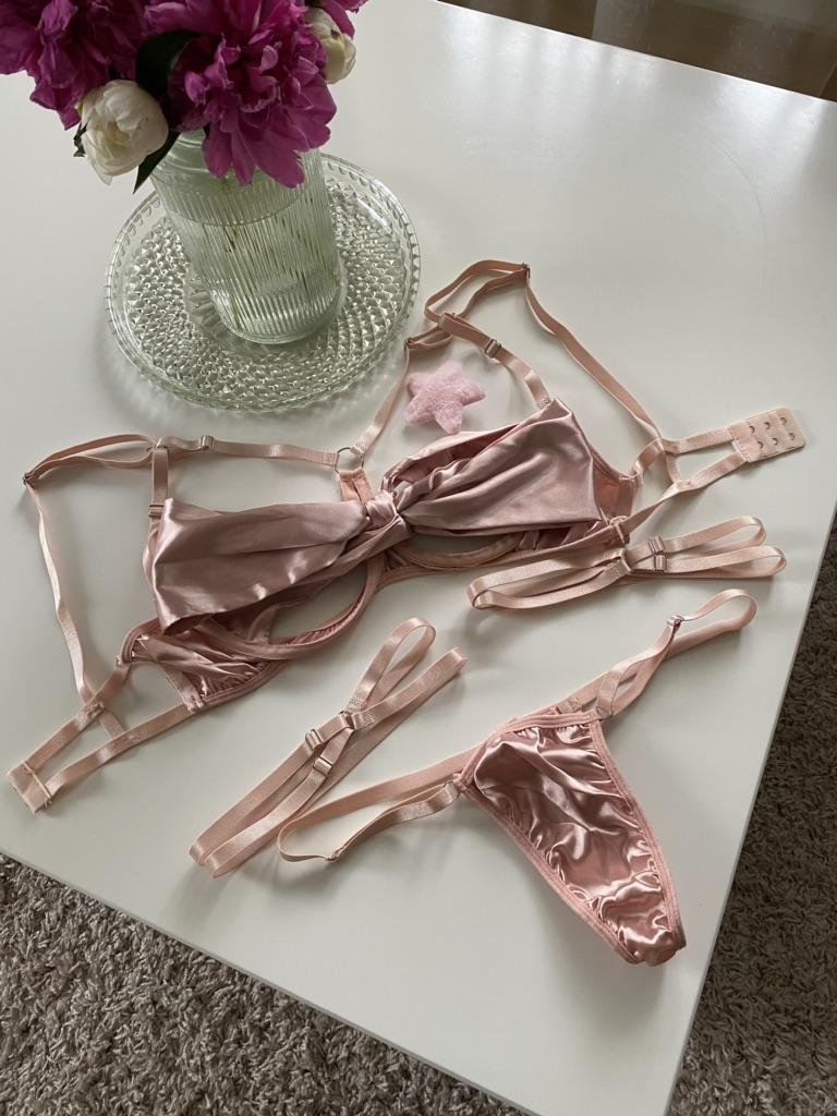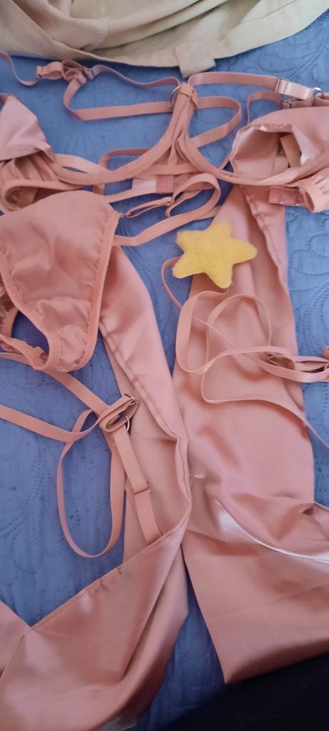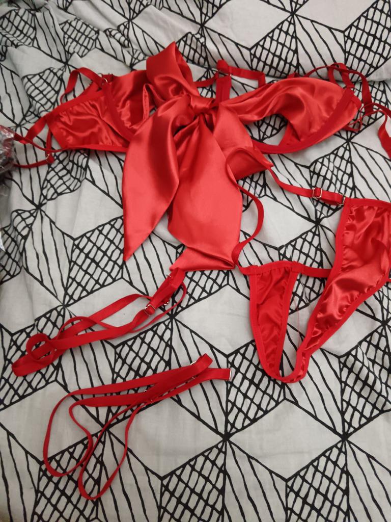 The product doesn’t match the photos. It’s poorly sewn. The material is not the same as on the photos. Underwear looks like they are for a male stripper. The bra has too much material on the sides and the straps look like they will choke you. I don’t recommend this one.