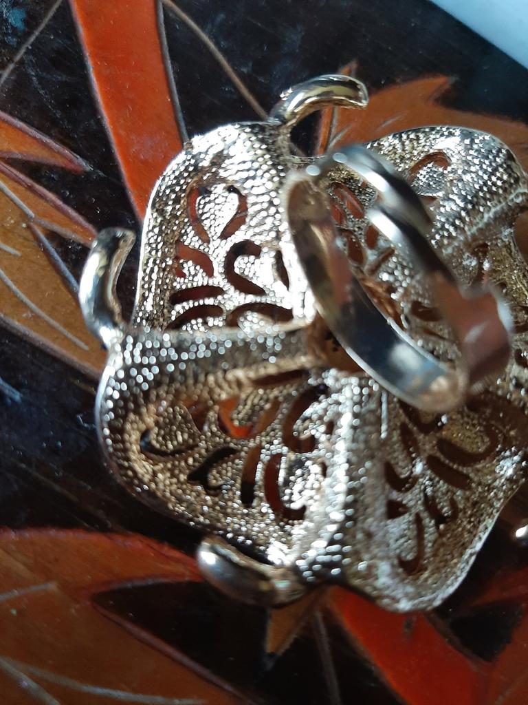The ring is beautiful, but heavy and I still can’t get my finger in it (I can’t get it to spread out so it’s round enough for my finger)