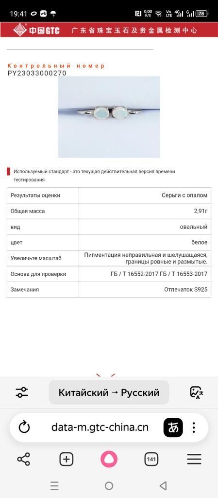 They are beautiful, but the metal in the earrings is not solid silver, but a coating. Metal sticks to a weak magnet. However, I read that in China delicate locks can be replaced with an alloy with a coating for the strength of the product and this is not a violation, and other parts are silver. I wear earrings often, collect compliments, stones attract attention. The parcel was well packed, received within the planned delivery time.