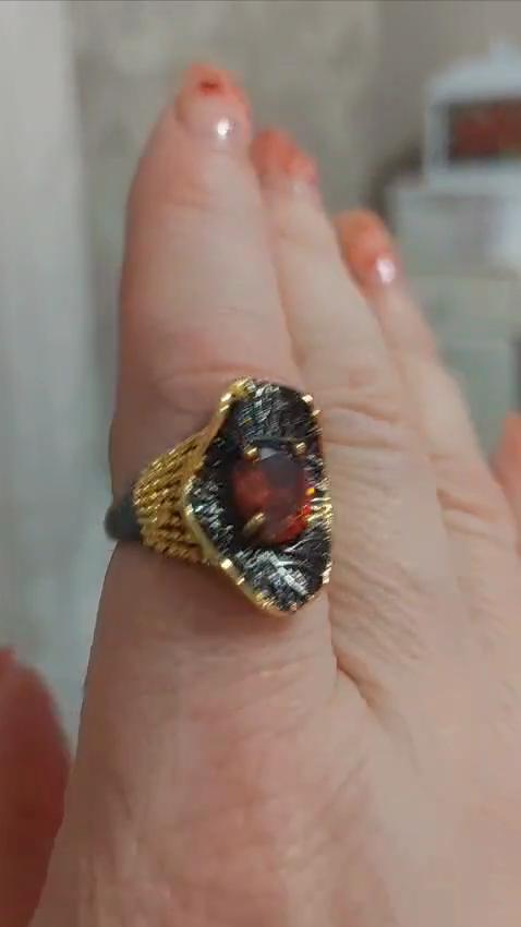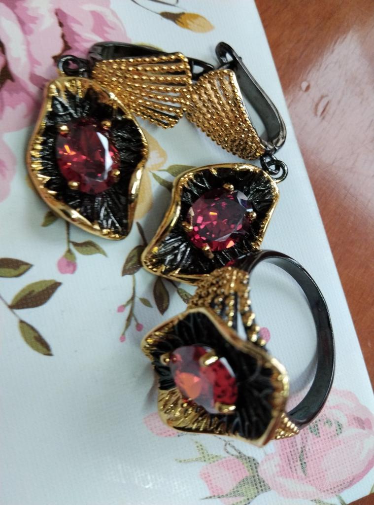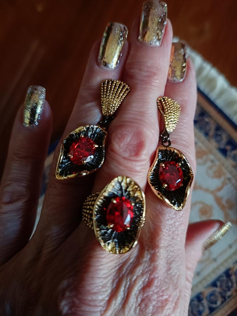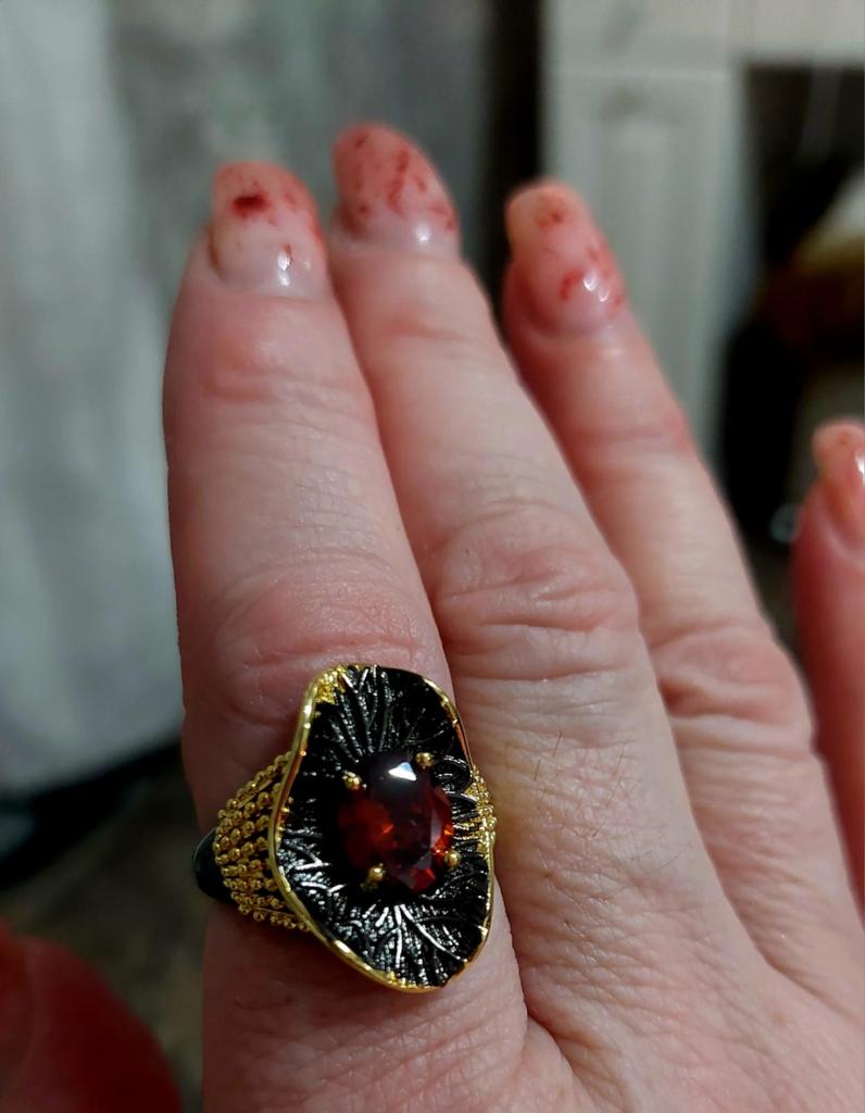 Exaggerated Irregular Black Gold Ring High Quality New Red Zircon Jewelry Bohemian Style Party Jewelry Engagement Ring for Women