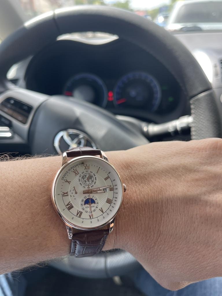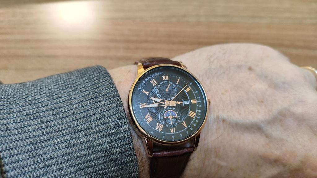 The watch is not working. It only shows the time and date. The hands indicating the month, day of the week, moon and sun are not in place. It looks absolutely new, so I don't think it's necessary to post photos and videos. The return service doesn't work.