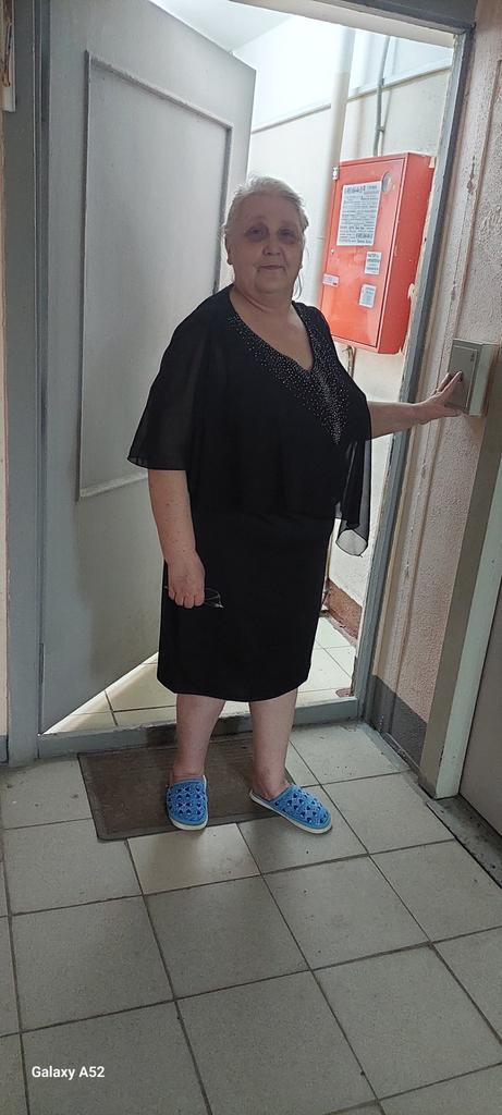 The dress is good, but it is made for women with a pear-shaped figure (I will correct it for myself). It fits size 54. The length is knee-length. I recommend it
