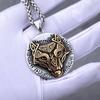 Stainless Steel Viking Mixed Gold Wolf Head Rune Necklace Men Retro Fashion Odin Amulet Pendant Necklace Hip-hop Biker Jewelry