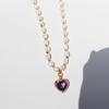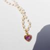 French Vintage Vintage Vintage Vintage Elegant Freshwater Pearl Red Love Necklace Peach Heart Zircon Tide
