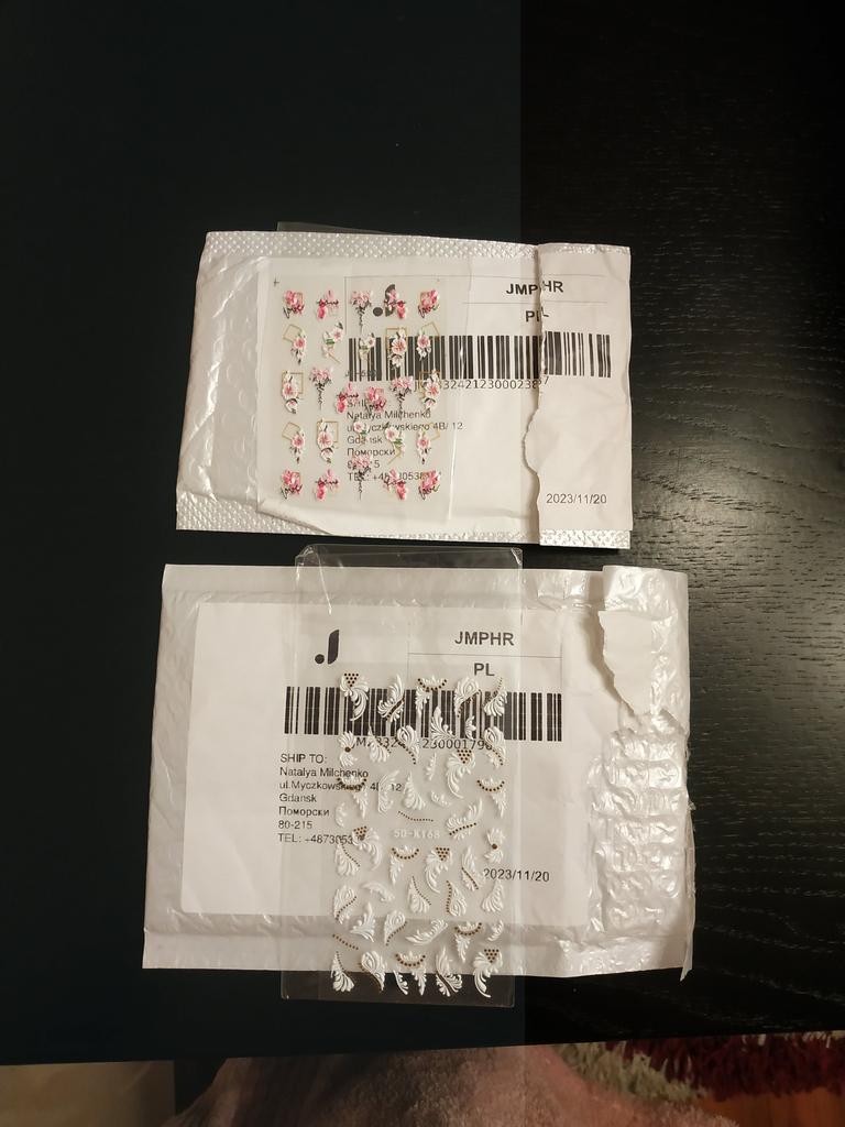 The stickers arrived exactly on time, they are GORGEOUS💪💪💪🔥🔥🔥❤❤❤ They look like molding on your nails, be sure to cover them with clear varnish and secure them.