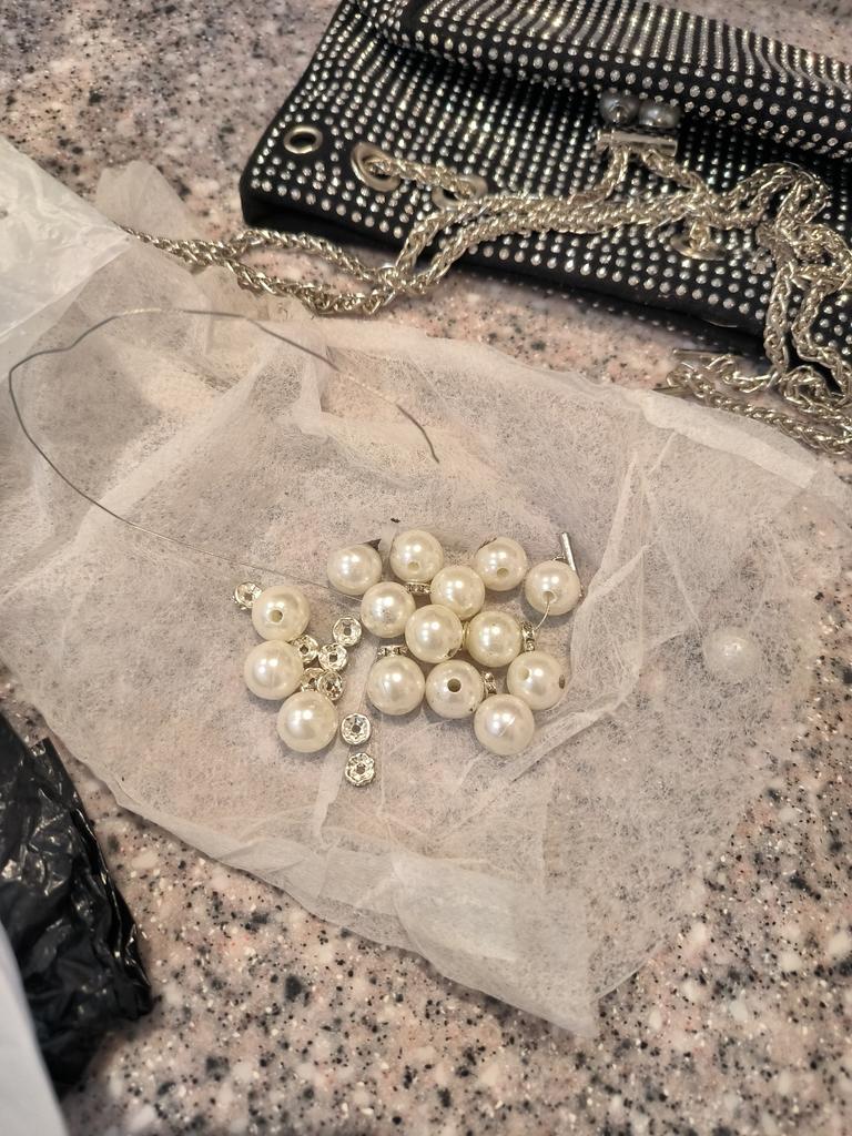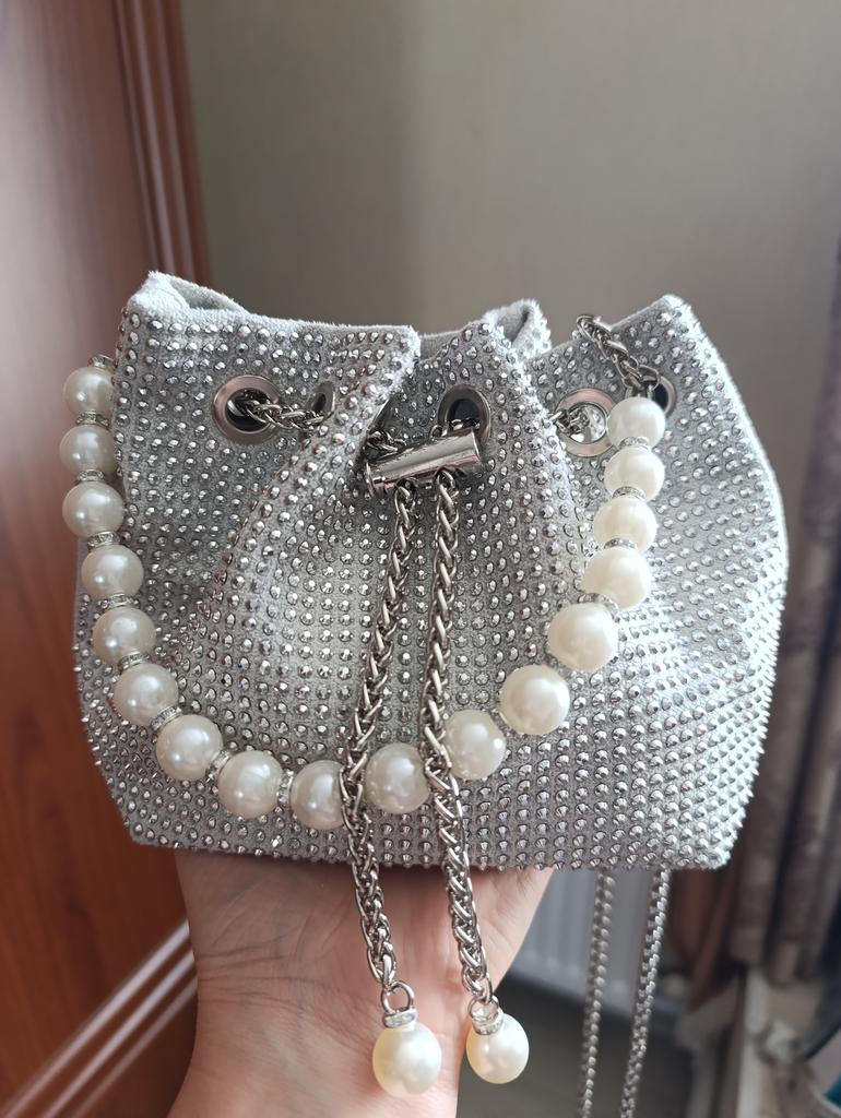 A pearl handbag, fashionable for women, is small in size. But it's not a shopping bag, it shouldn't be big. Today is Teacher's Day 🎉, I will be awarded a certificate 🏅, I will go dressed up and with this handbag. It's very beautiful. 👍 Bought for 491 ₽.