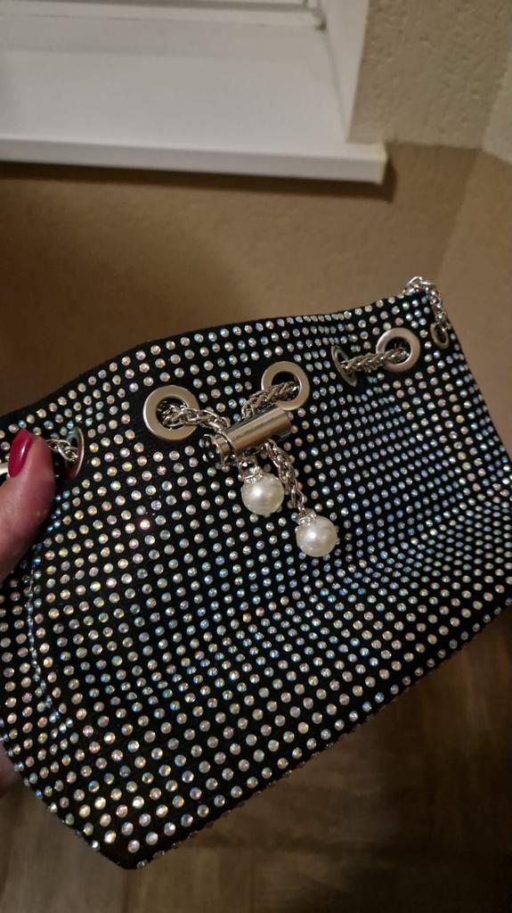 Elegant handbag. All the glittery elements are well attached. The chain strap is length-adjustable. As an evening accessory or a bright accent in a basic daytime look