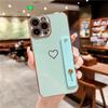 Wrist Strap Love Heart Phone Case For Iphone 13 11 12 14 Pro Max 13pro 11 14max Shockproof Bumper Soft Electroplated Back Cover