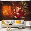 Snow Christmas Tree Fireplace Santa Claus Print Tapestry Wall Hanging Background Cloth Decor Christmas Home Room Wall Decoration