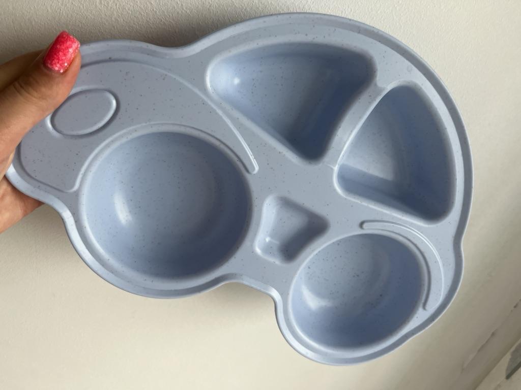 I bought it for my grandson, the plate is stable and quite large. I will add to this when I bring it to him. It's plastic, looks good, in the shape of a car. I think he will like it.